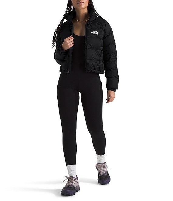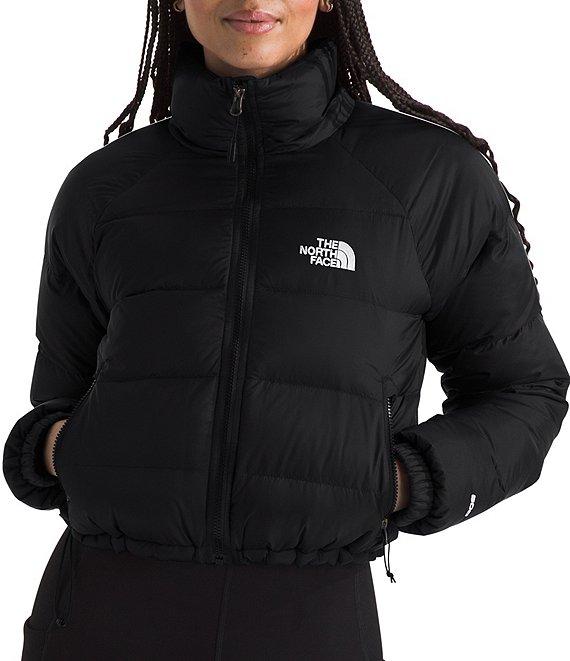From The North Face, this jacket features: Cropped standard fit Stand collar Long sleeves with encased-elastic cuffs Exposed-zip hand pockets Non PFC DWR finish for added water repellency Embroidered logo on left chest and back-right shoulder Fully lined Adjustable drawcord hem Exposed VISLON center front zip with an internal draft flap closure Approx. 19.75" length Recycled nylon taffeta; lining: recycled polyester Fill: 600-fill recycled waterfowl down Machine wash/tumble dry Imported.