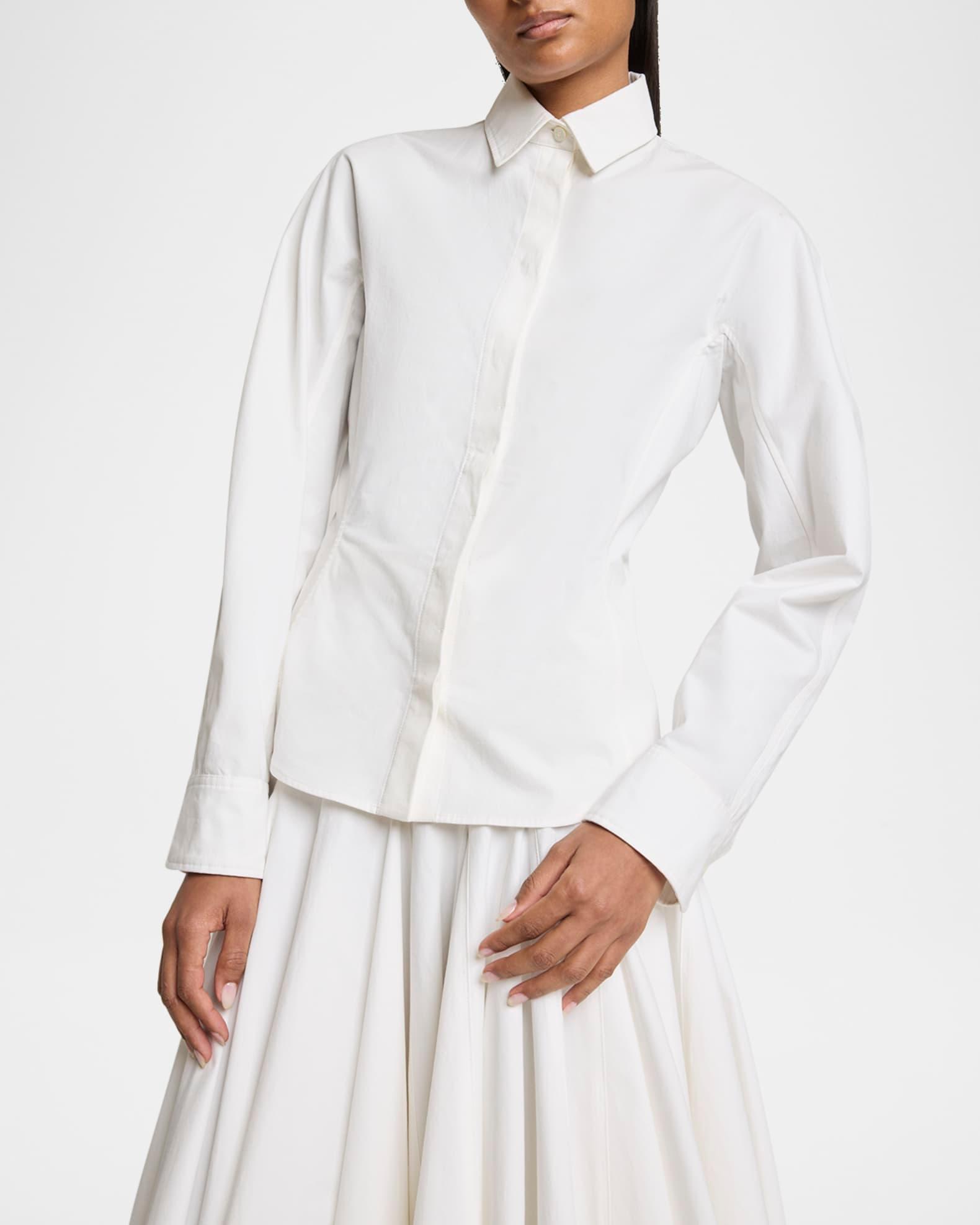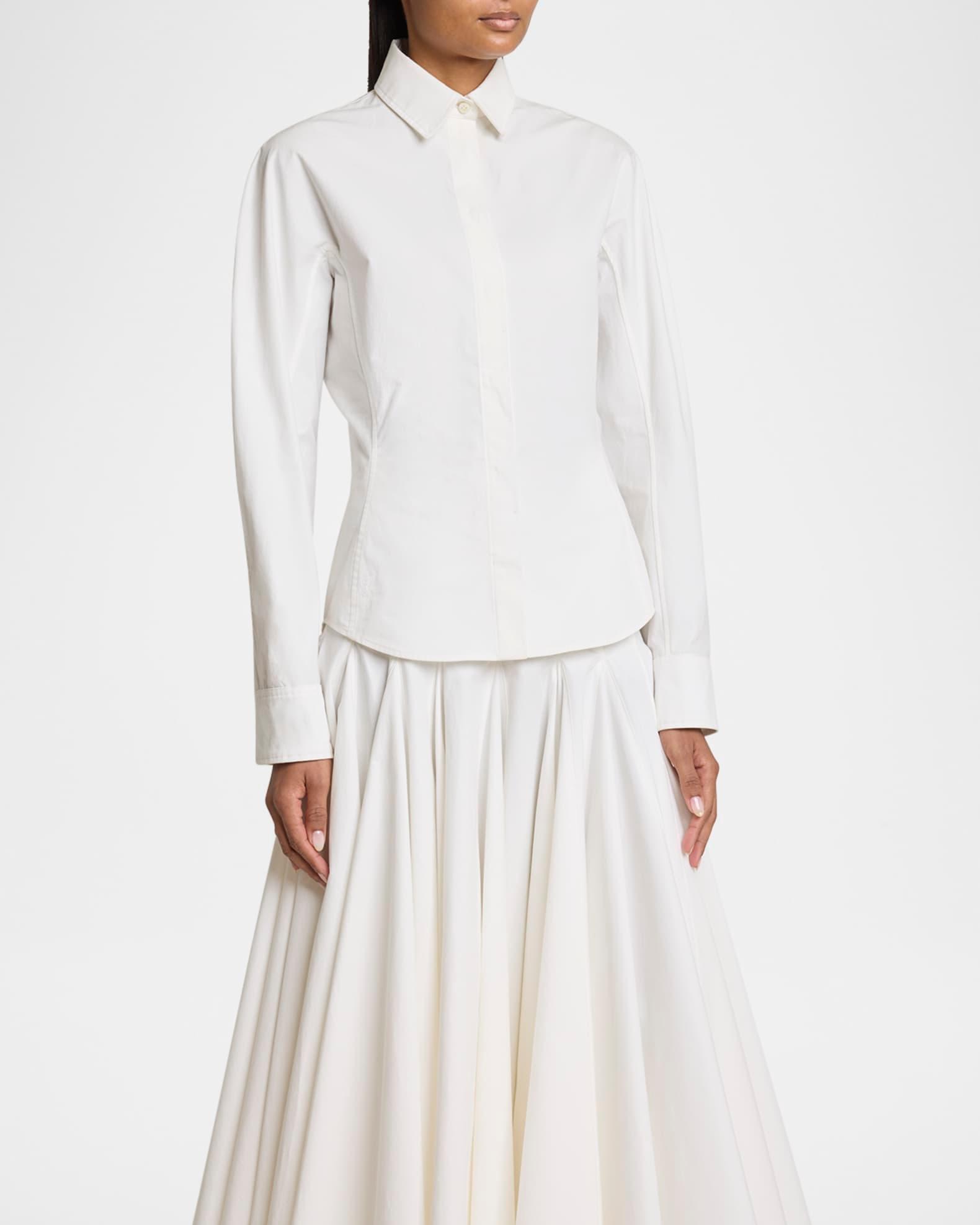 Jacquemus crisp cotton shirt Point collar Long curved sleeves with button cuffs Slim fit Hem sits at the hip Concealed button-front Cotton Imported