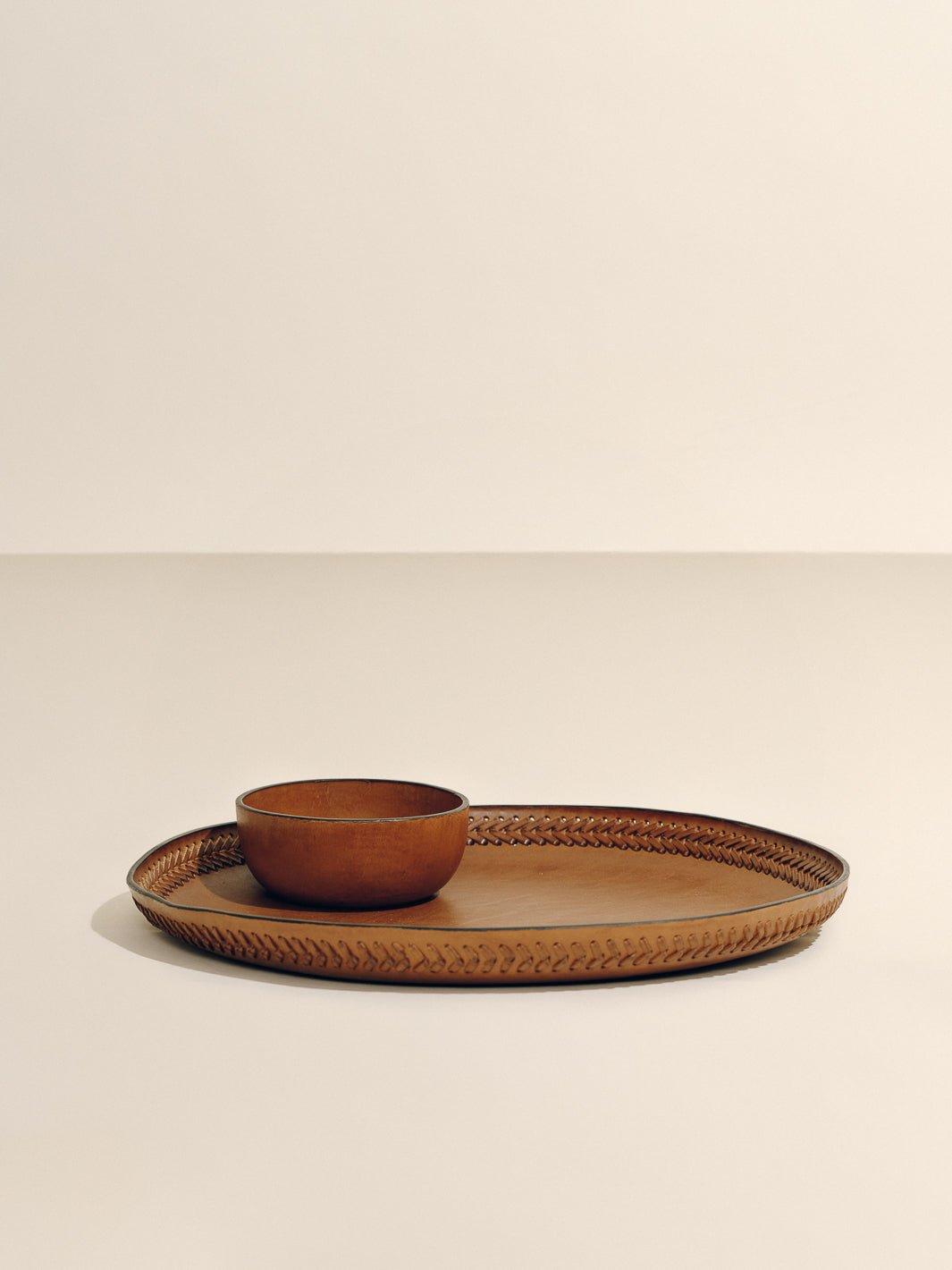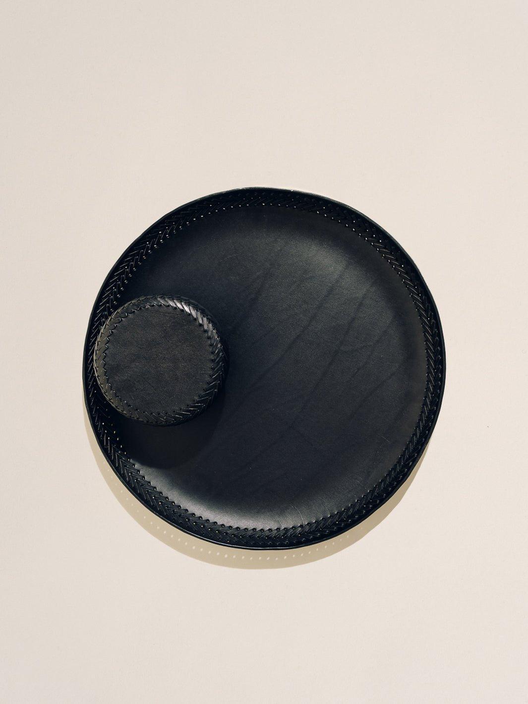 The Oversized Tray, an exquisite addition to any home decor collection. Crafted with the utmost attention to detail, this tray features a seamlessly formed circular tray that was made using a time-honored molding technique. This tray has been shaped into an organic, biomorphic silhouette that exudes a sense of elegance and sophistication. The smooth leather construction is buffed to perfection, giving the tray a luxurious finish that echoes the look of Japanese lacquer-ware. Designed by a team of skilled artisans in Colombia, this tray is a true heirloom for the home. Whether used as a centerpiece on a coffee table or to serve guests at a dinner party, the Oversized Tray will elevate your space and make a statement in your home.