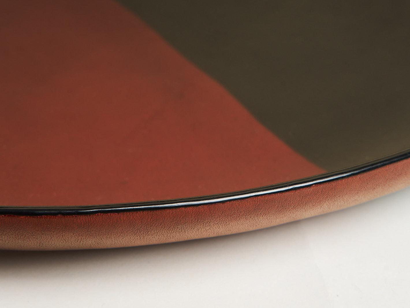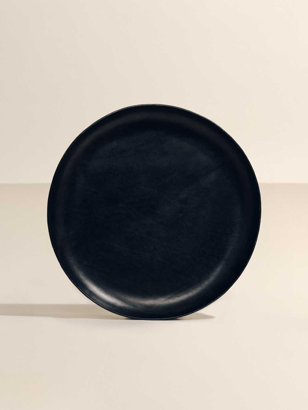The Oversized Tray, an exquisite addition to any home decor collection. Crafted with the utmost attention to detail, this tray features a seamlessly formed circular tray that was made using a time-honored molding technique. This tray has been shaped into an organic, biomorphic silhouette that exudes a sense of elegance and sophistication. The smooth leather construction is buffed to perfection, giving the tray a luxurious finish that echoes the look of Japanese lacquer-ware. Designed by a team of skilled artisans in Colombia, this tray is a true heirloom for the home. Whether used as a centerpiece on a coffee table or to serve guests at a dinner party, the Oversized Tray will elevate your space and make a statement in your home.