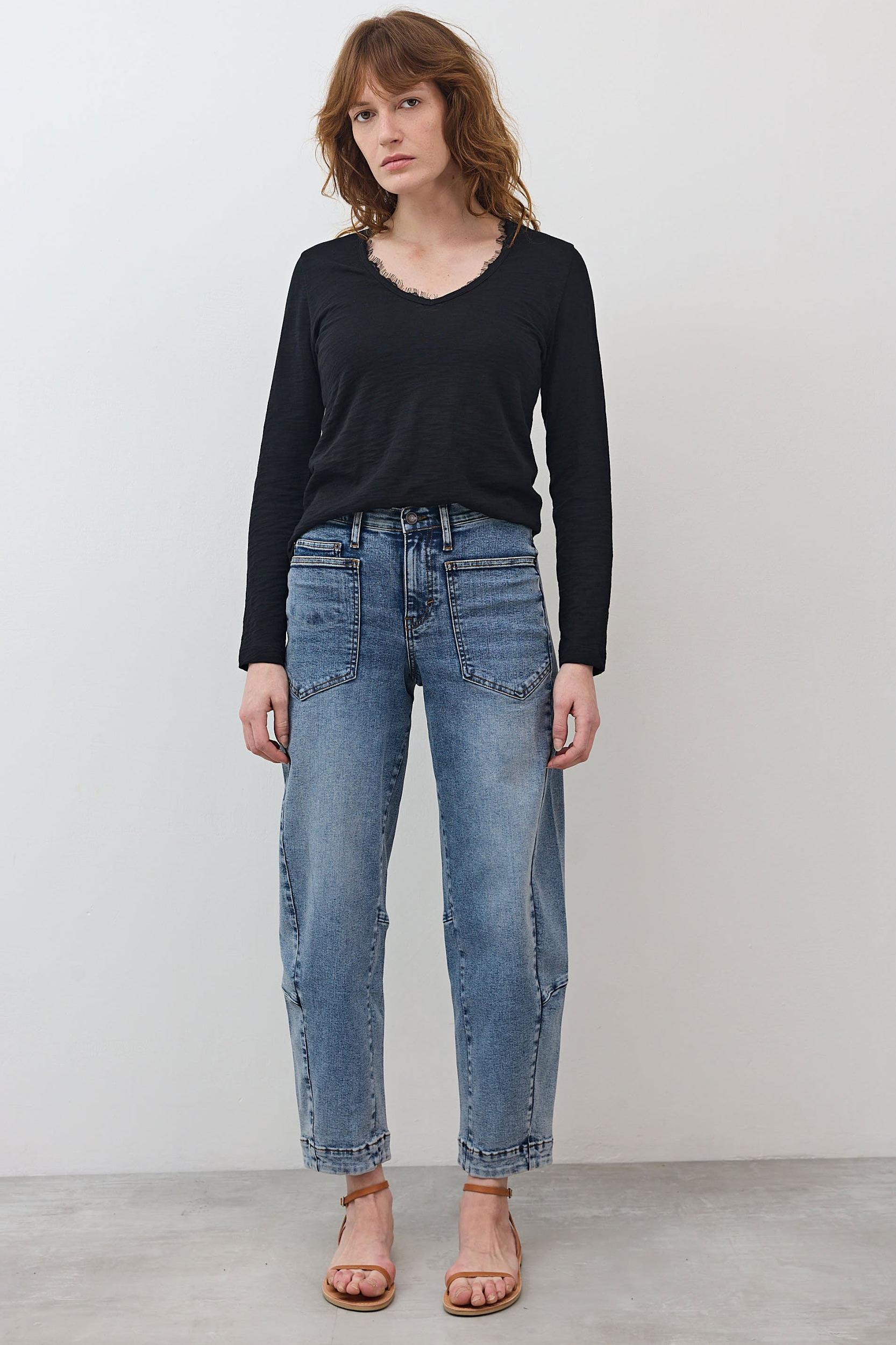 Meet your new go-to denim.They’re relaxed in all the right places, with a tapered leg that flatters and a clean, structured fit. Boxy patch pockets and a subtle back yoke add just the right amount of utility and shape. Hits above the ankle for a modern, easy finish. Tapered leg Relaxed fit Hits above the ankle Boxy pockets front and back Back yoke for subtle shaping