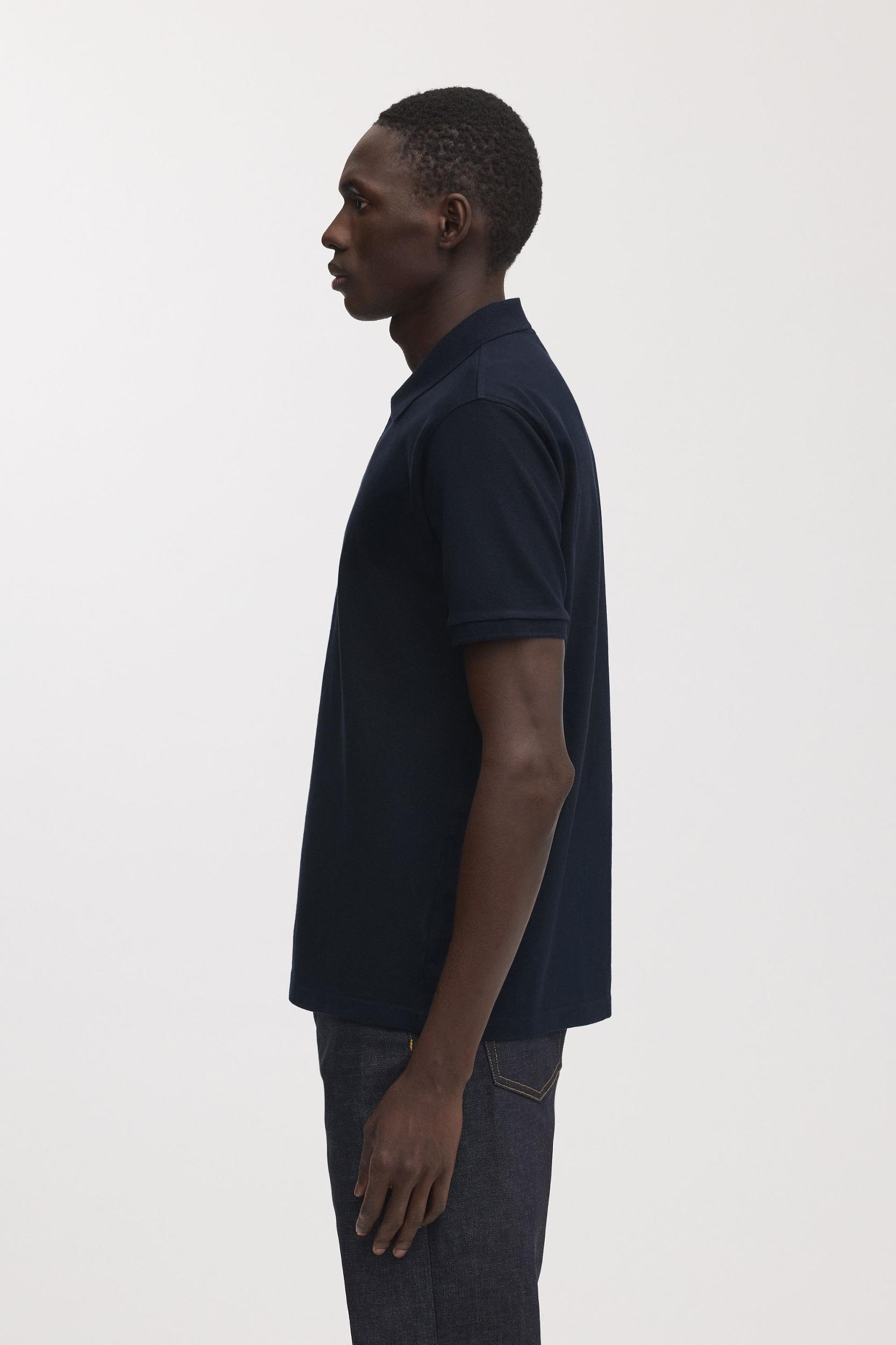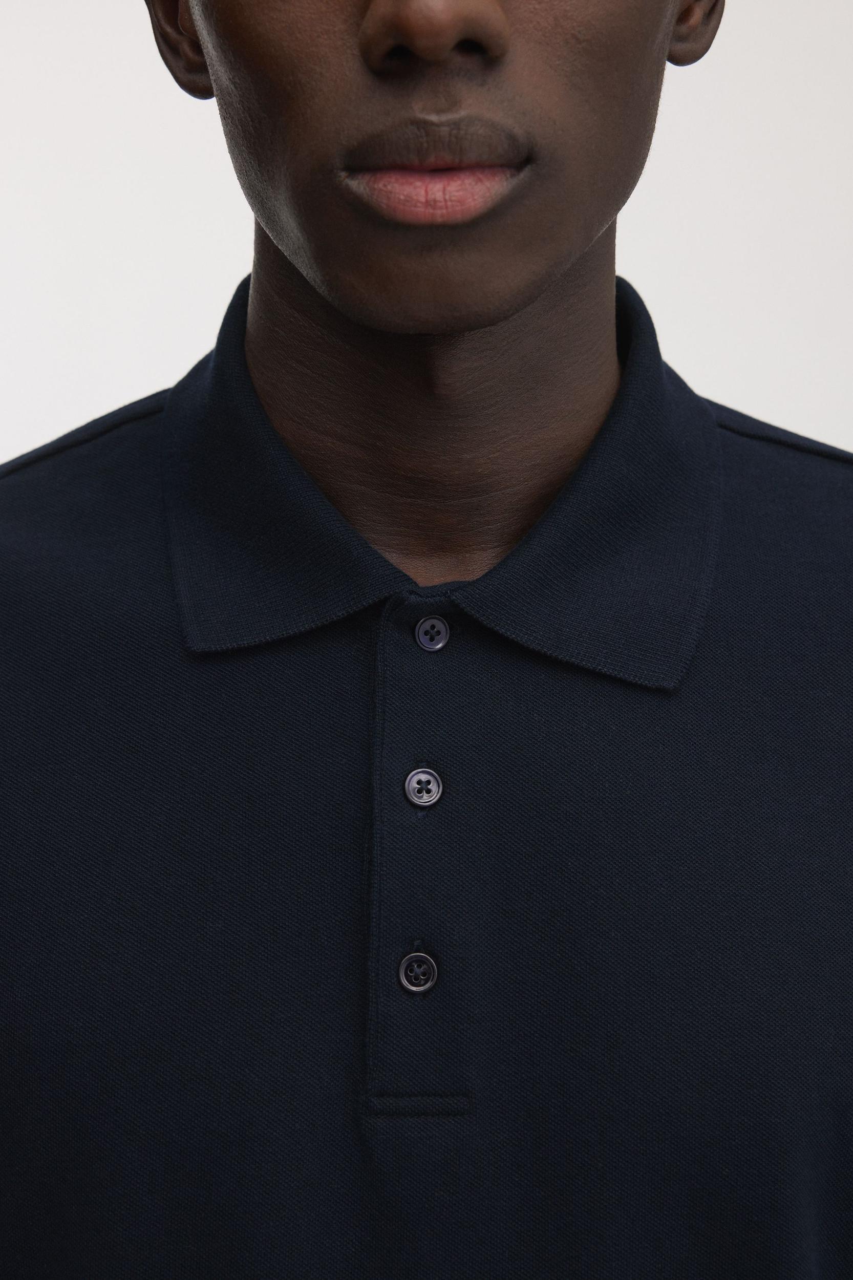 The Pique Polo in Dark Navy. A minimalist pique polo shirt made from premium quality 100% organic Egyptian cotton, available in long, regular and short