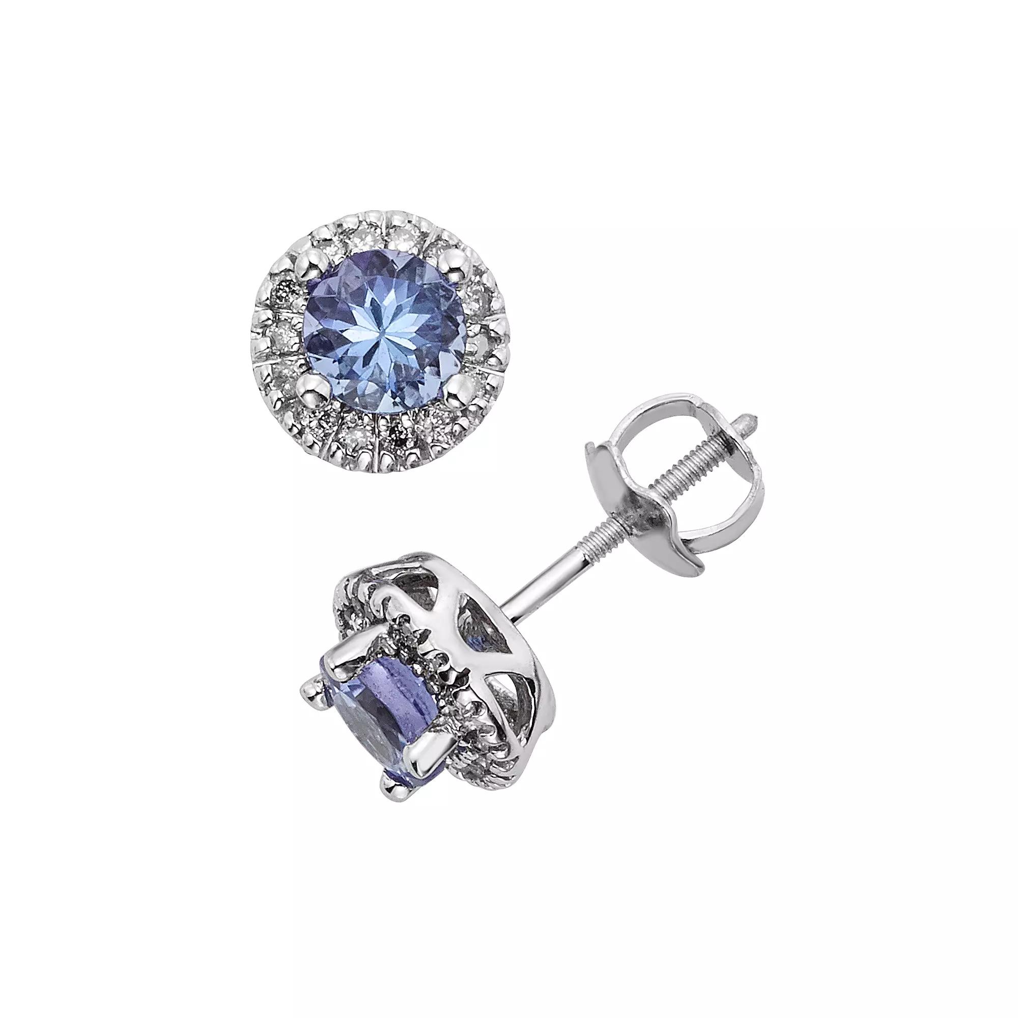 Adorn yourself in beauty with these 14k white gold stud earrings. Genuine Tanzanite stones and diamonds in a tiered halo design make them a stunning way to elevate your ensemble.Adorn yourself in beauty with these 14k white gold stud earrings. Genuine Tanzanite stones and diamonds in a tiered halo design make them a stunning way to elevate your ensemble.EARRING DETAILS Diameter: 7 mm Backings: screw-on, screw-off Metal: rhodium-plated 14k white gold STONE DETAILS Stone type: genuine tanzanite Total weight: 1 ct. Cut: round Setting: prong DIAMOND DETAILS IGL certified Total weight: 1/8 ct. Cut: round Color grade: H-I Clarity: I1-I2 Setting: prong Image(s) may be enlarged to show detail.Diamond weights are approximate. Diamond total weights may vary between .01 and .08 ct. Some diamonds have fewer than 17 facets.Please note, due to the high value of this item, a signature may be required upon delivery.Gemstones may have been treated to enhance their appearance. Special care may be required. Please visit our Gemstone Treatment & Special Care Guide for more information. Size: One Size. Color: Purple. Gender: female. Age Group: adult.