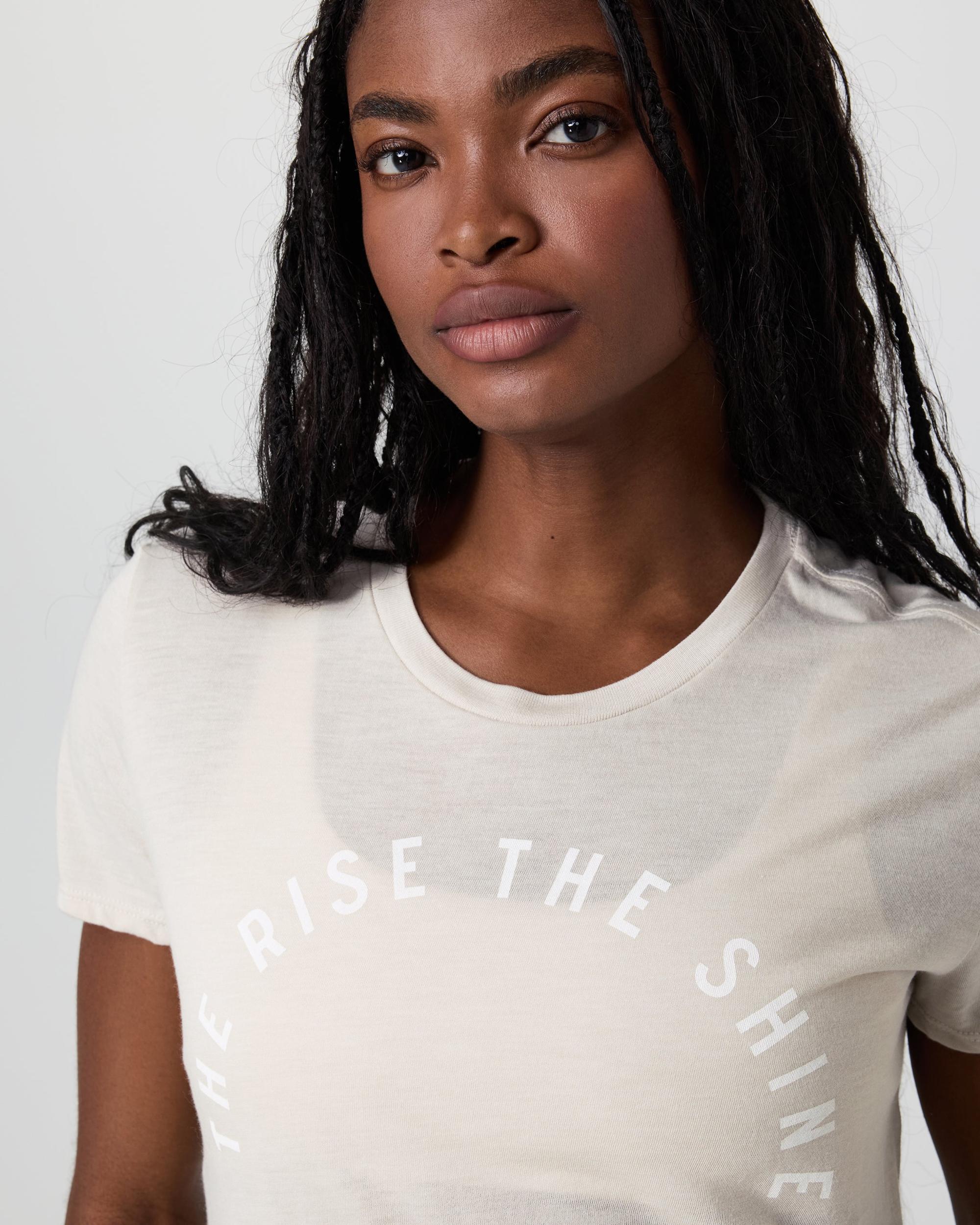 Embrace The Rise and chase The Shine with this casual women's lifestyle graphic tee. Shop The Rise The Shine Tee in Dust Heather from Vuori.