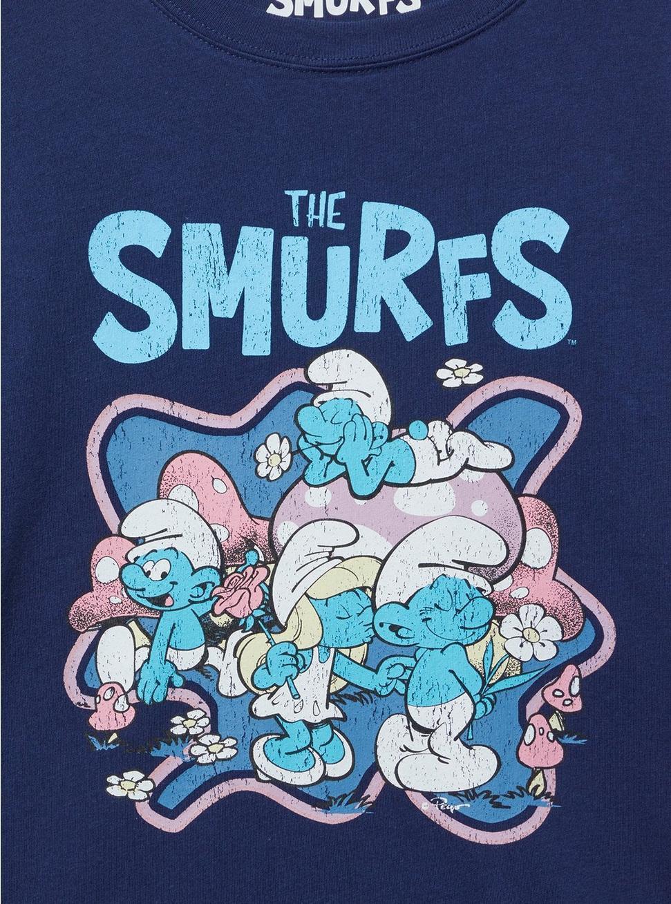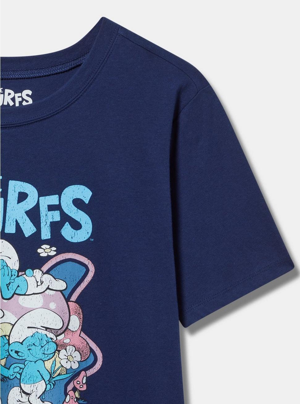FITClassic fit: Fitted up top, eased through the body.Measures 30'' from shoulder (size 2). MATERIALS + CARECotton-blend knit fabric. 60% cotton, 40% polyester. Machine wash cold. Tumble dry low.Imported.DETAILSCrew neck.Short sleeves. The Smurfs graphic.