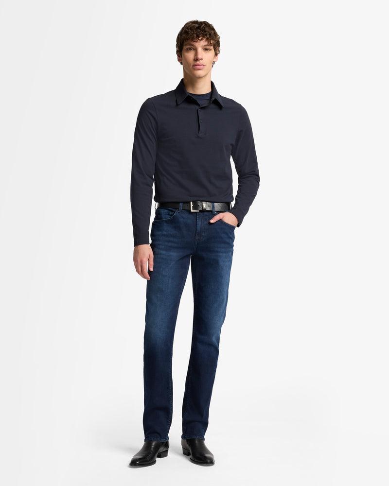 Fits like: A straight, relaxed fit that runs parallel through the leg, hitting just below the waist for a modern yet classic shape. The Details: Black wash Zip fly with button closure Signature squiggle back pocket embroidery Tonal stitching