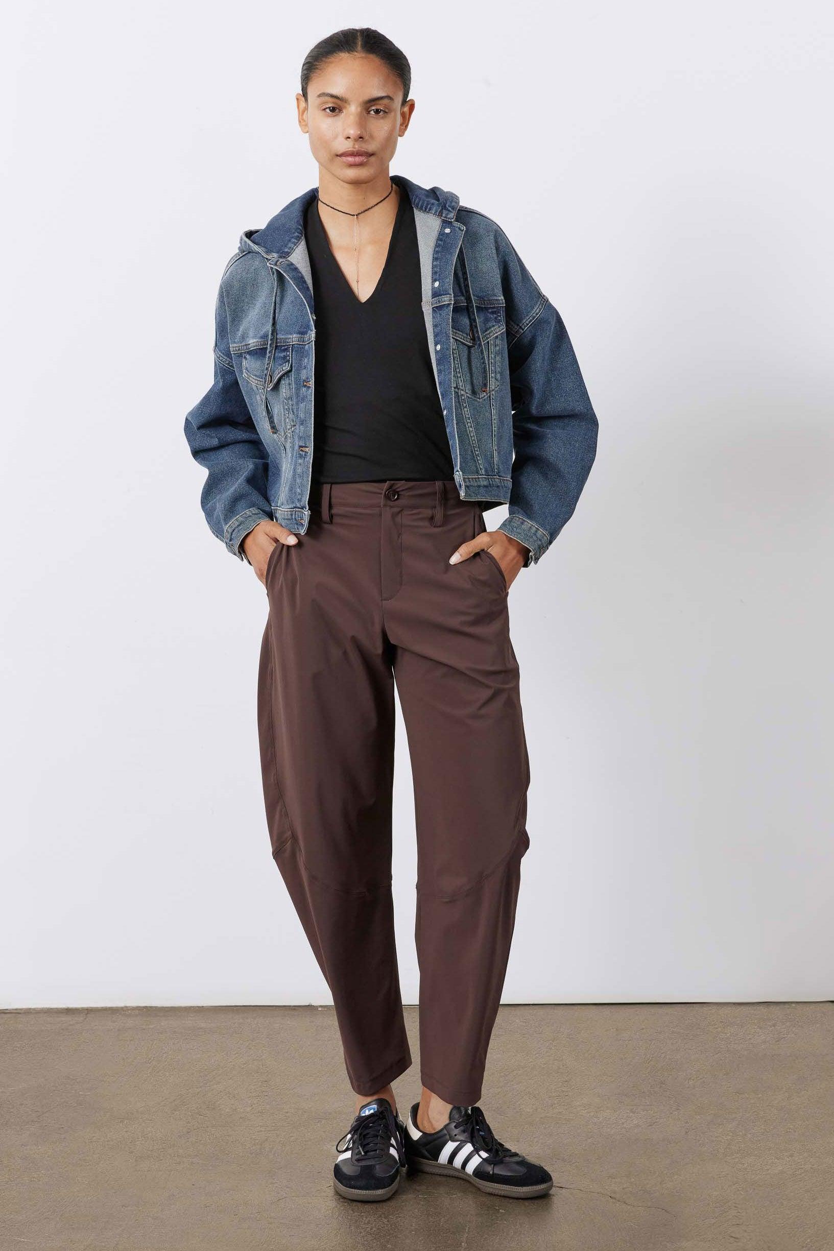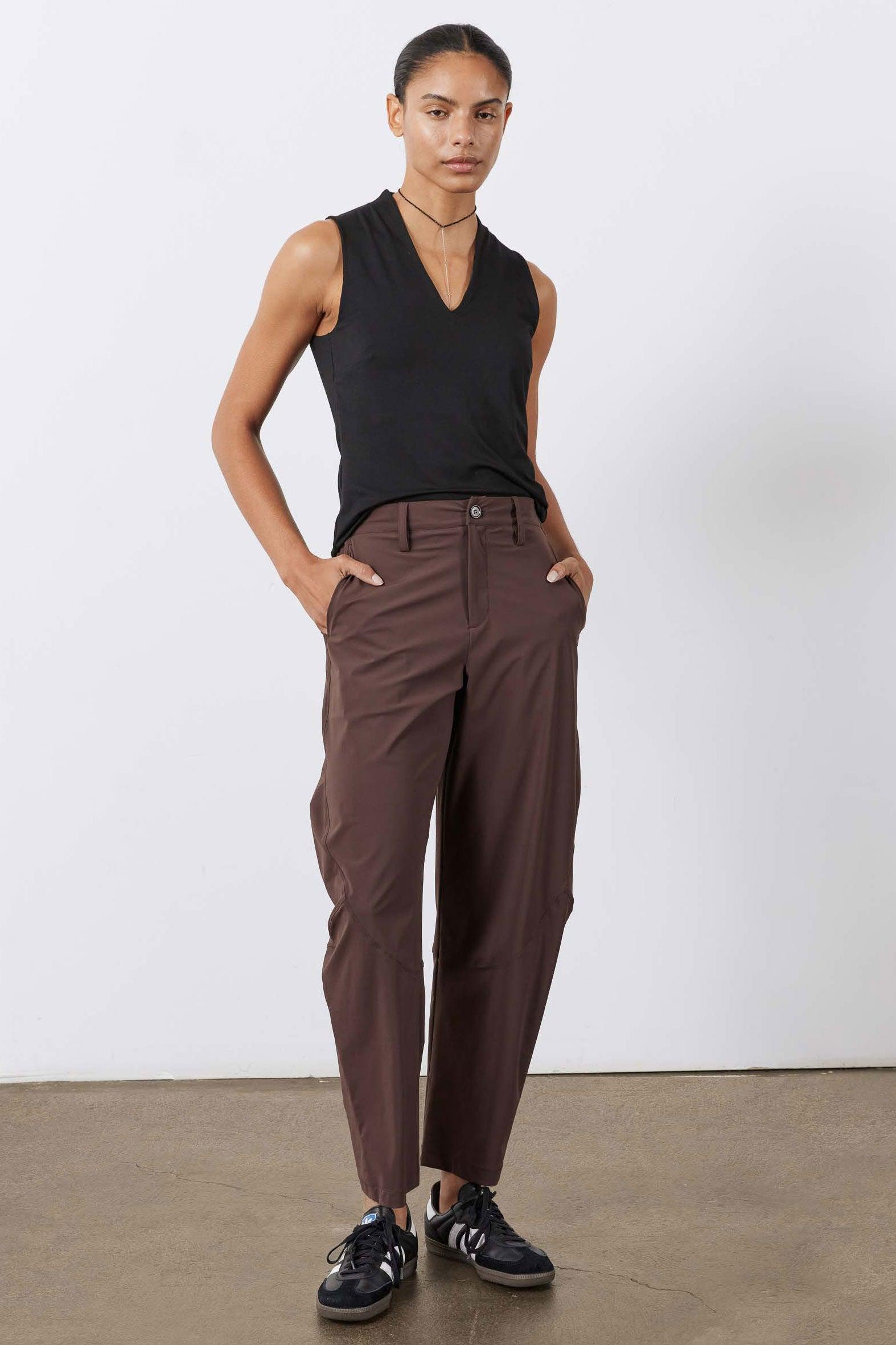 Our famous style in Coffee. These pants are a standout yet comfortable pair. Style with your favorite blouse or top for an easy, everyday style. Hits above the ankle Slight stretch Relaxed fit Tapered leg Side pockets