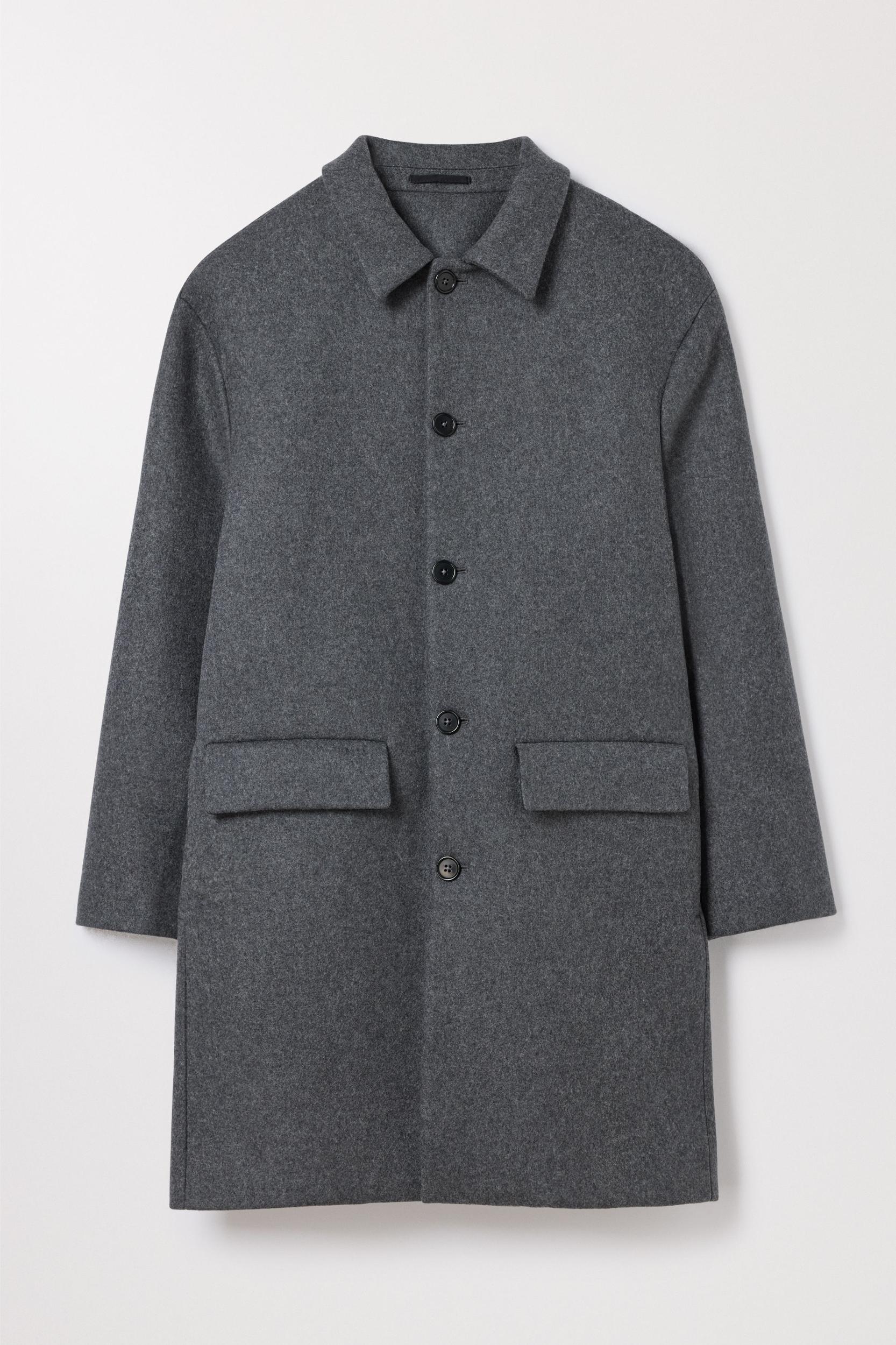 The Wool Coat in Charcoal Melange. Cut from low-impact, 100% recycled wool, it's as sharp as it's kind to our planet. Available long, regular and short sizes.