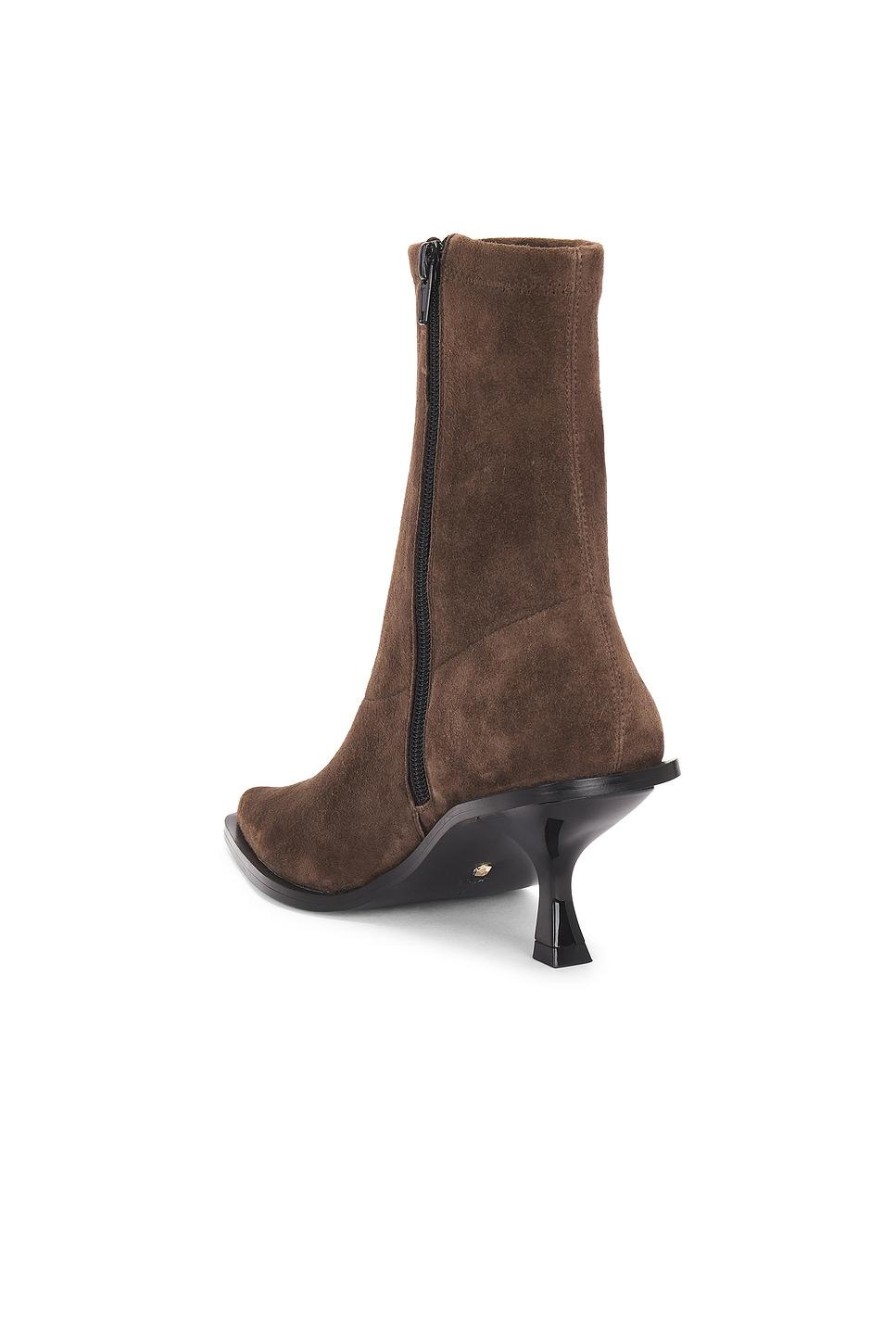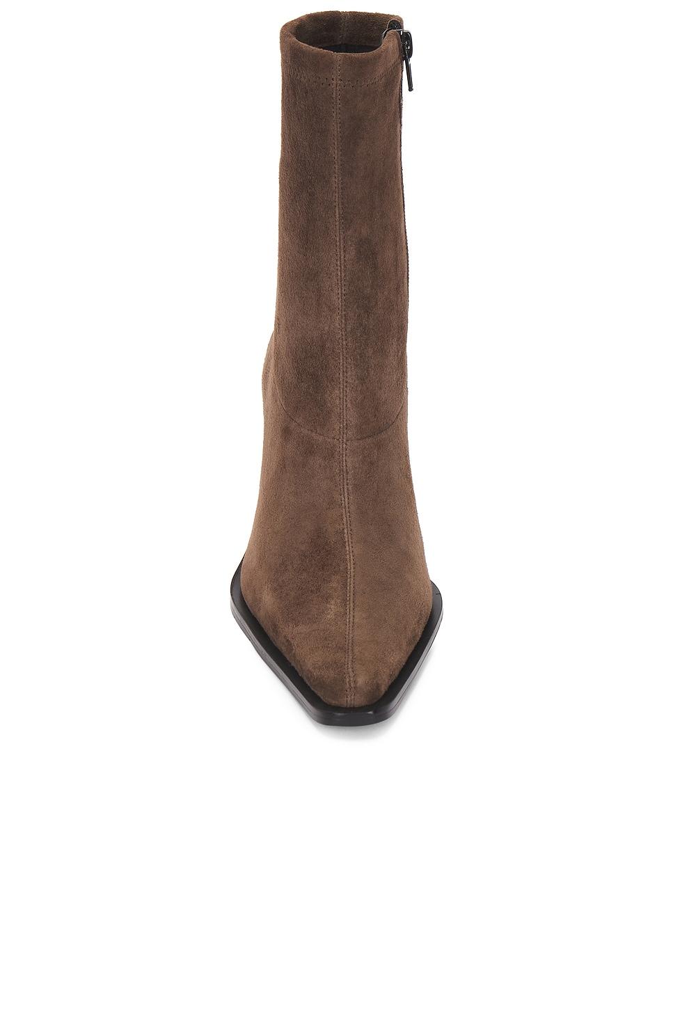 Suede upper with manmade sole. Made in China. Side zipper closure. Leather footbed with textile lining. Pointed toe. Approx 70mm/ 2.75 inch heelApprox 171mm/ 6.75 inch shaftShaft measures approx 10.99" in circumference. Revolve Style No. RAYE-WZ2740. Manufacturer Style No. rysh1763 f24.