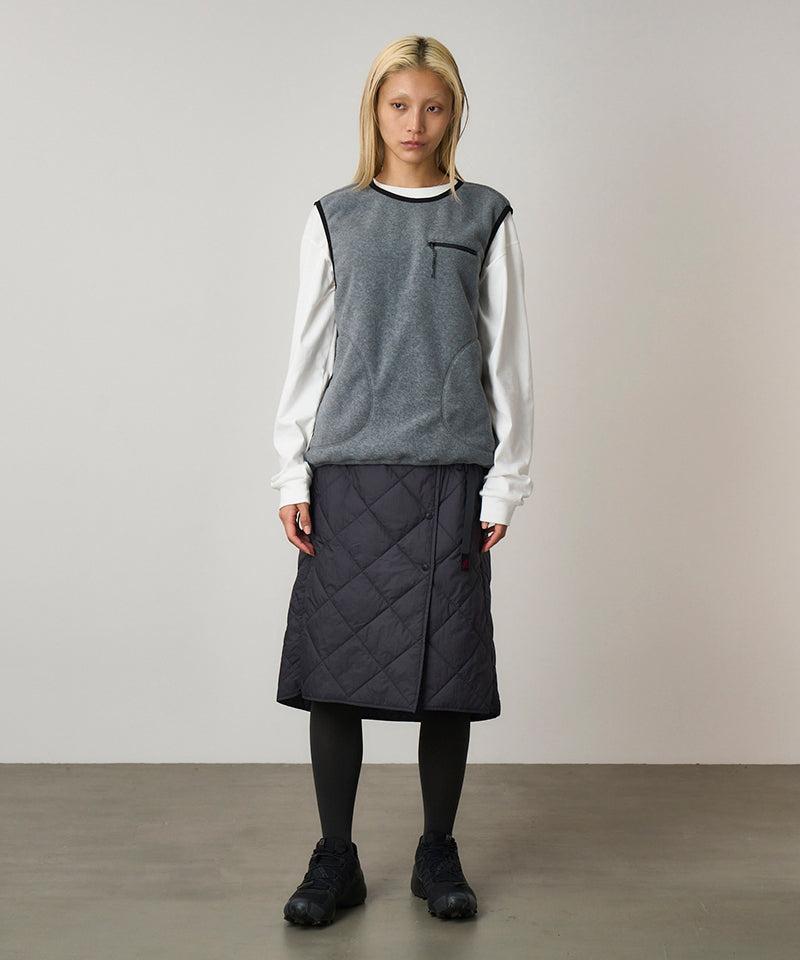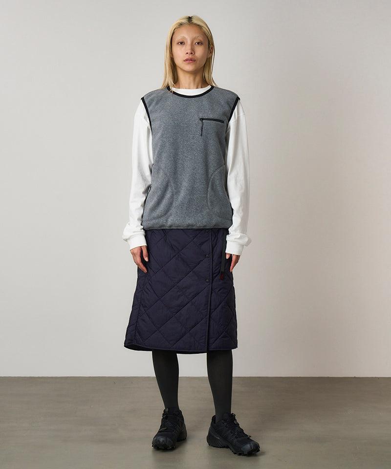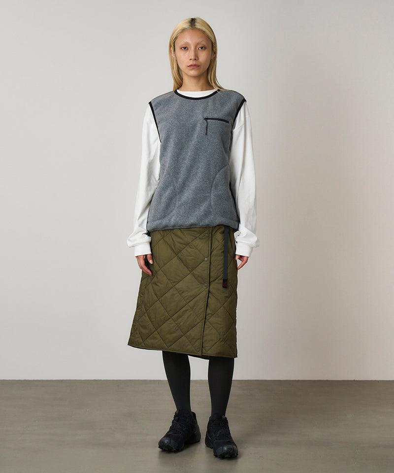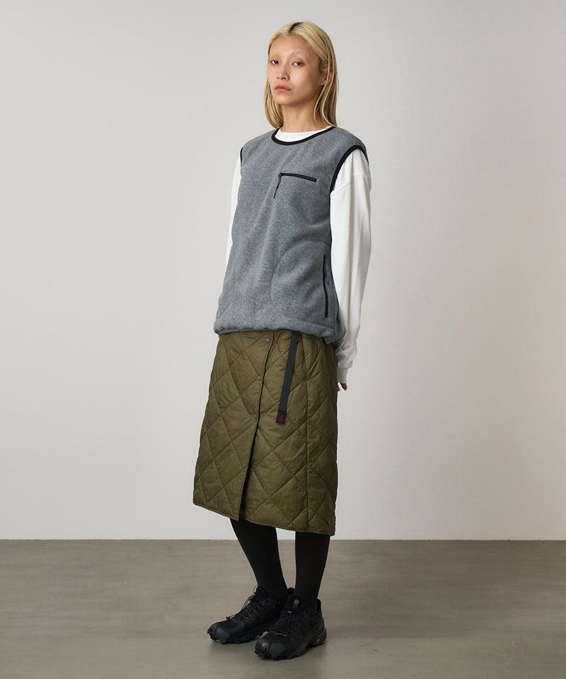 Style Number: G5FW-SK033 Made with high performance thermal insulation - Main Fabric: 100% Nylon, Lining: 100% Polyester, Insulation: 100% Polyester Lightweight ripstop outer shell Comfortable fleece lining Elasticated waist for comfort Mid-length, below-the-knee wrap silhouette Female Model is 5'7" - Wearing Size Small The Gramicci Women's Thermal Insulation Quilted Skirt is for those who understand that sometimes the best gear is the stuff that makes you question why you ever accepted being cold as an inevitable part of outdoor adventures. This lightweight ripstop outer shell with toasty down-fill insulation and comfortable fleece lining is basically a wearable sleeping bag disguised as fashionable outerwear, proving that warmth and style don't have to be mutually exclusive when the mercury decides to take a nosedive. The packable design means it won't eat up valuable space in your luggage, collapsing down small enough that you can actually bring other essential items (like more snacks). Because while other skirts are busy being seasonal, this one is engineered to make winter actually enjoyable instead of just survivable.