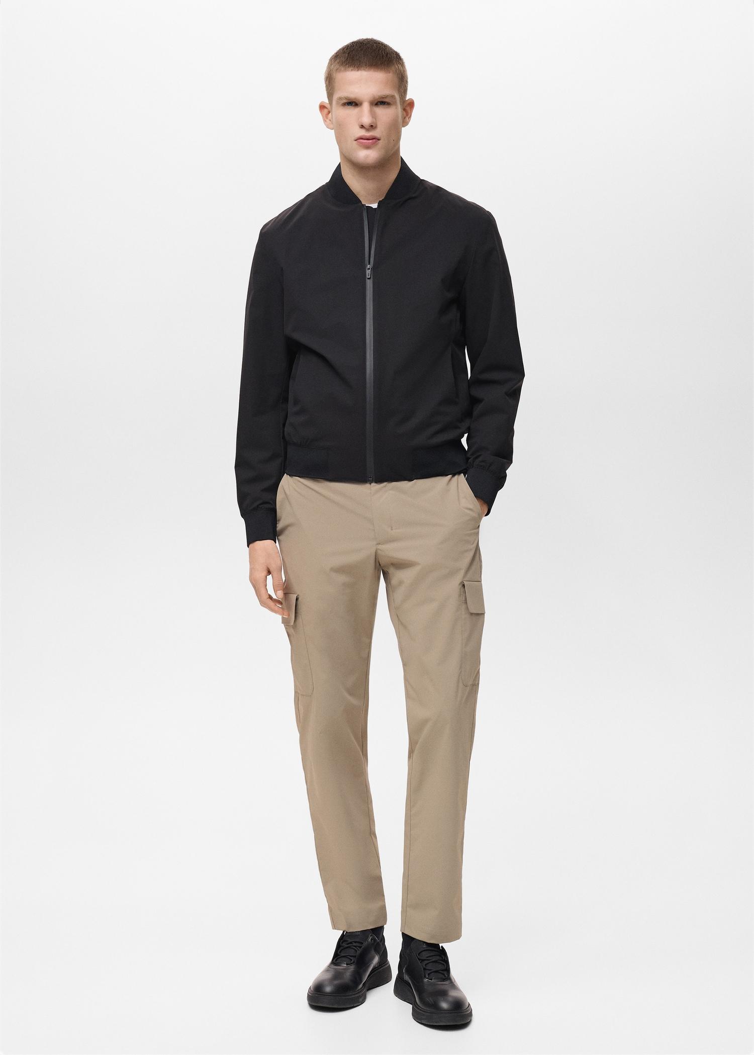 Performance Collection. Comfort Stretch: Stretch fabric for added comfort. Thermoregulating: This fabric offers optimal breathability to keep you at a stable temperature. Slim fit. Cargo design. Drawstring waist. Double-breasted and zippered front closure. Two front welt pockets and water-repellent zipper closure. Two patch pockets and flap on the leg. The model is 6'3" and is wearing a size 42. Inside leg measurement 29.84 in. Side length 40.55 in. The Performance collection includes garments made with technical fibers. This selection offers a wide range of advanced features such as bi-stretch, quick-drying, easy ironing, thermoregulating, breathable or water-repellent fabrics, organized into three general categories: Thermoregulating, Functional and Comfort