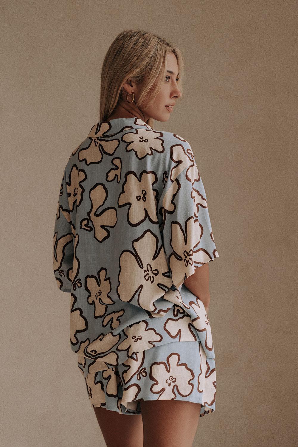 The perfect summer set has arrived! The Thessy Shorts are made from a luxurious lightweight viscose linen blend fabric in our exclusive Outline Floral print. They are a high waisted style featuring an elasticated waist, twin pockets and high-low hems. Pair with the Thessy Top! Designed exclusively by Sabo.