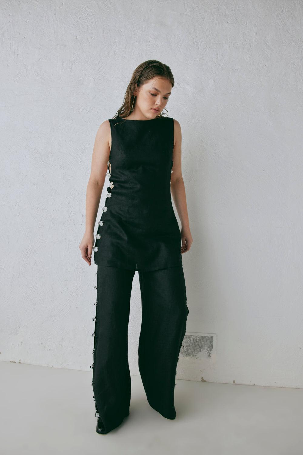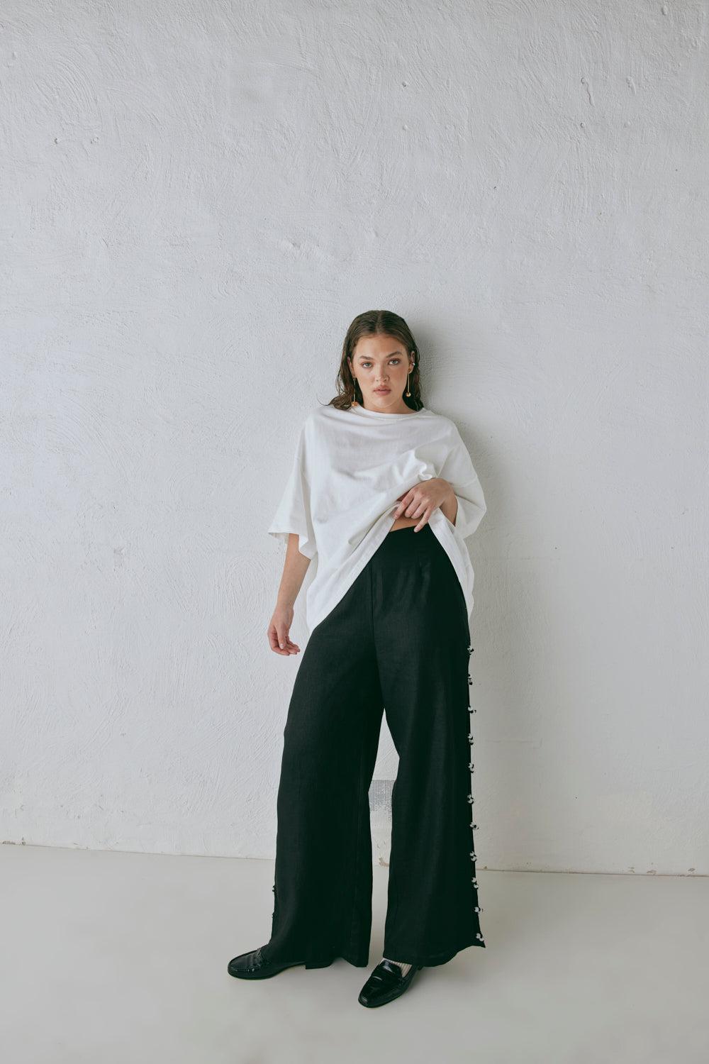 Tia Linen Pants Black