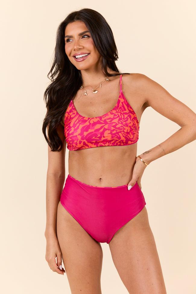 Details Reversible Bikini Bottom in Pink Multi Print Fabric has stretch Lined Size small rise: 11" Material and Care 95% polyester 5% elastane Machine wash cold, no drum drying Patterns may vary Materials may have natural variations Colors may vary from different viewing devices.