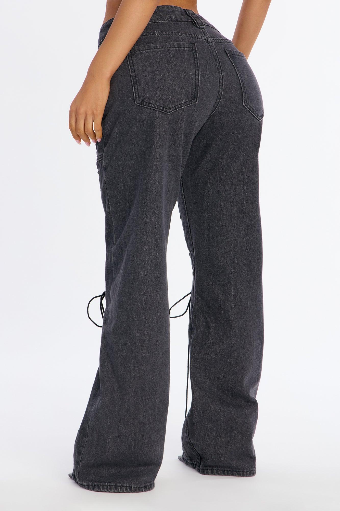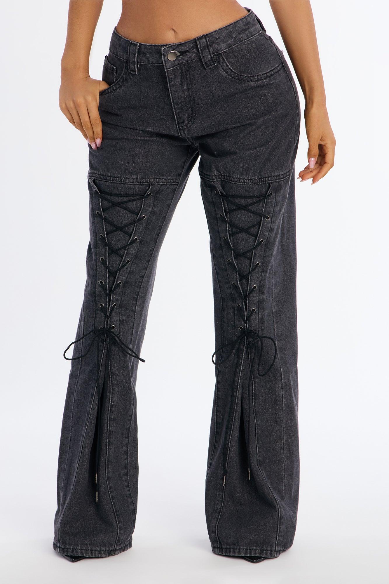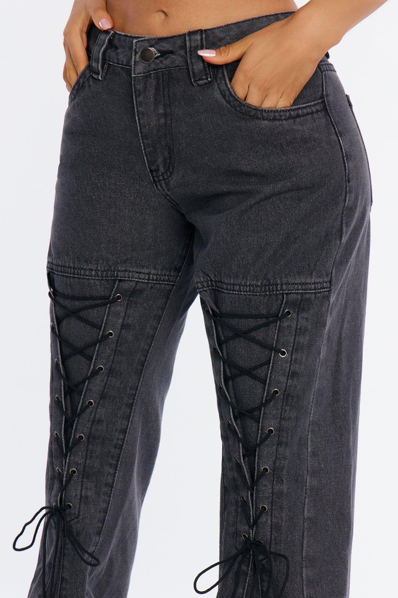 Tied Together Lace Up Wide Leg Jeans - Dark Grey Female