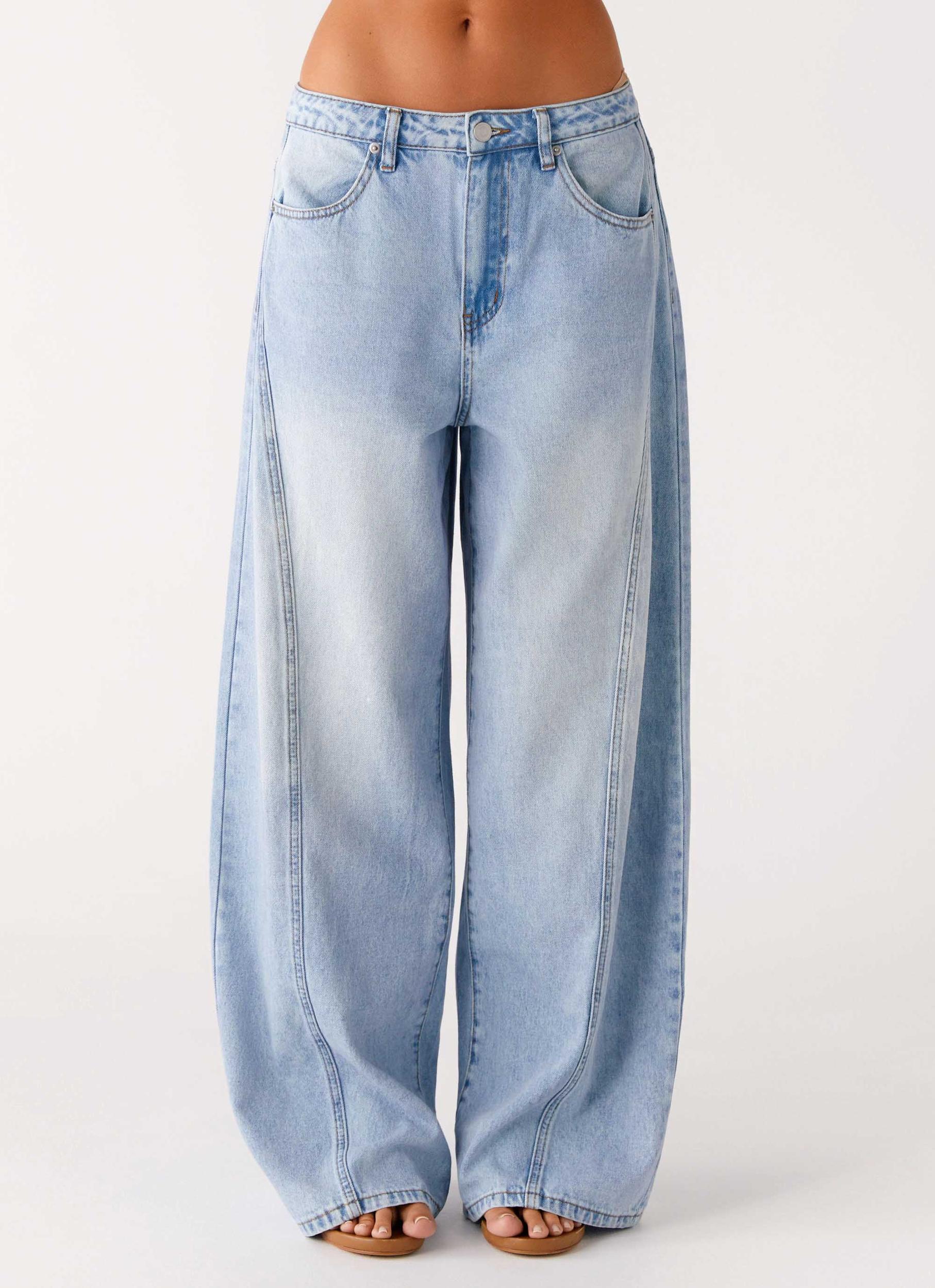 Peppermayo Exclusive Relaxed and effortlessly cool, the Jhm Wide Leg Twisted Seam Jeans in Bleached Blue bring laid-back vibes with a twist. With a low-rise fit, front metal button and zipper, and a baggy silhouette, they’re made to stand out and stay comfortable all day long. - Low rise- Front metal button and zipper- Front twin slanted pockets- Back twin patch pockets- Belt loops around- Unlined- Baggy fit- Design line detailing- Fabric:100% Cotton Size AU 8 / US 4 garment measurements: Waist: 74 cm / 29.13 inHip: 104 cm / 40.94 inInseam: 76 cm / 29.92 in Dekota is 172cm and wears size AU 6 / size US 2