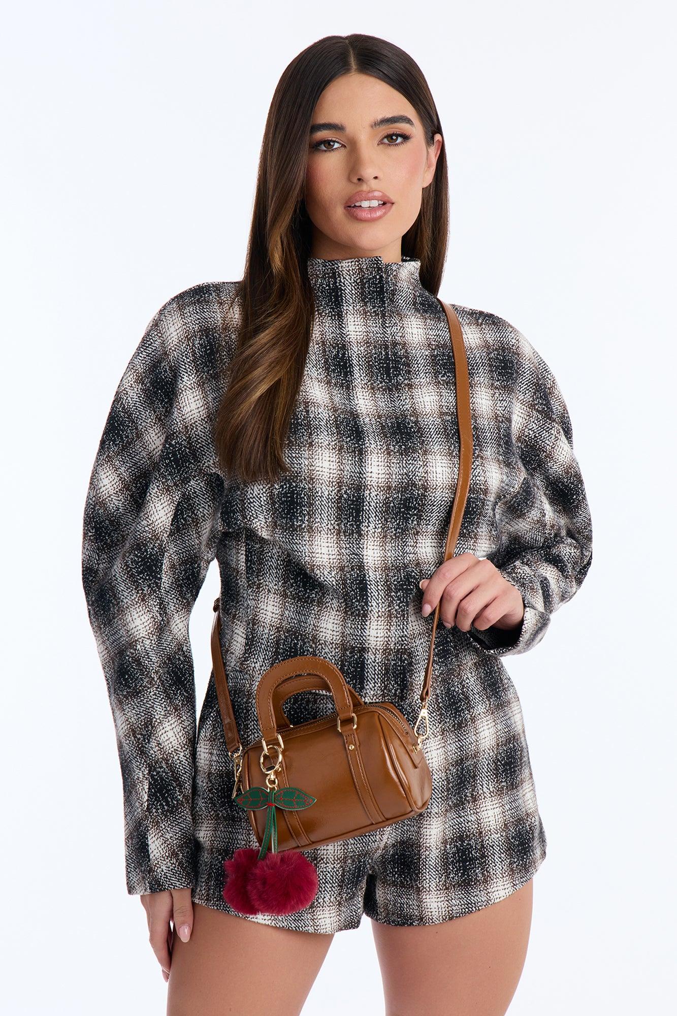 Available In Brown. Satchel Bag Faux Leather Top Zip Closure Removable Handbag Charm Dimensions: 7"4"5" Imported California Proposition 65WARNING: Cancer and Reproductive Harm - www.P65Warnings.ca.gov.