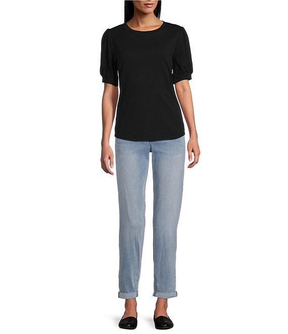 From Tommy Bahama, this top features: Supremely soft slub rib fabrication Crew neckline Short puff sleeves Slightly rounded hemline Pullover construction Approx. 25" in length cotton Machine wash cold with like colors; gentle cycle; tumble dry low; cool iron Do not dry clean Imported.