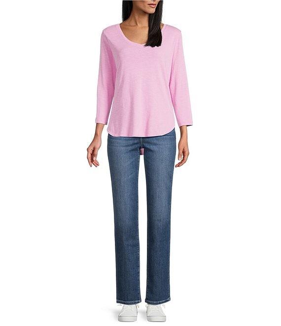 From Tommy Bahama, this tee features: Slub rib fabrication V-neckline 3/4 sleeves Slight hi-low hemline Pullover construction Approx. 24.5" in length Cotton Machine wash cold with like colors on gentle; tumble dry low; cool iron Do not dry clean Imported.