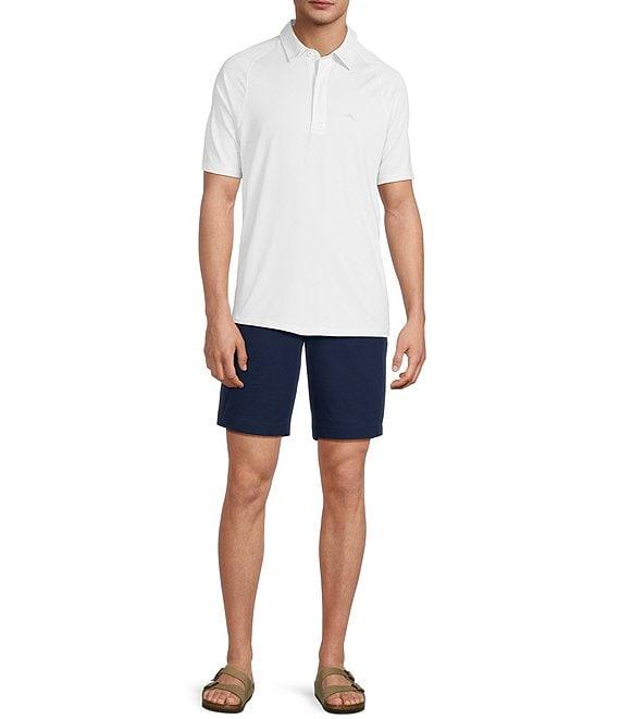 From Tommy Bahama, this shirt features: All-over print Silicone branding on the left chest Covered zip placket Short, raglan sleeves Side seam ventson Quick dry Cooling properties UPF 30 Moisture wicking Stretch fabric Nylon/polyester/spandex Machine wash Imported.