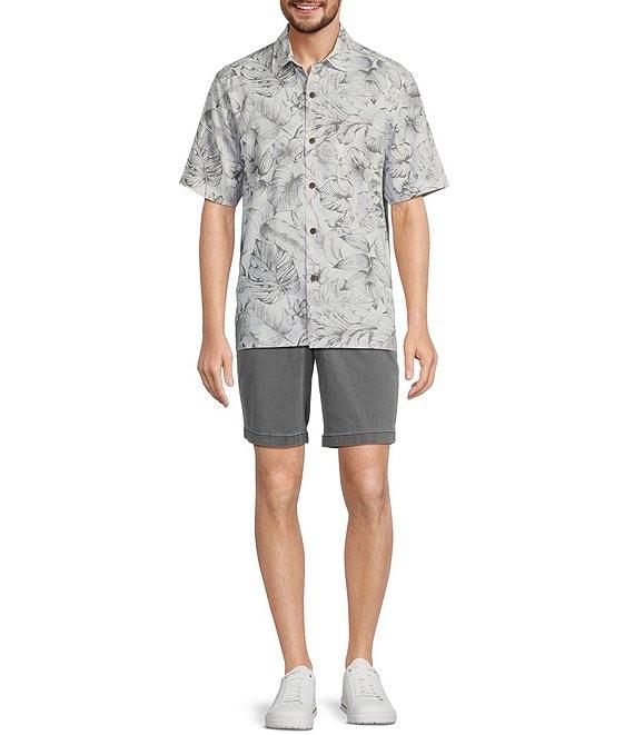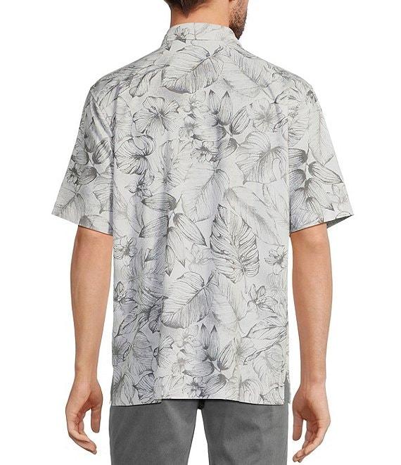 From Tommy Bahama, this shirt features: Allover print Point collar Short sleeves Left chest curved pocket Button-front closure Straight hem Moisture wicking Stretch fabric Modal/Coolmax® EcoMade polyester/spandex Machine wash/tumble dry Imported.