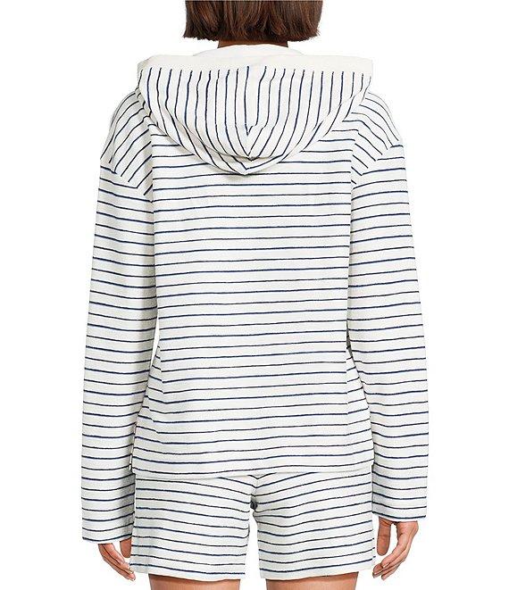 From Tommy Bahama, this jacket features:Yarn dyed cotton-blend crepe jersey fabricationHoodCriss-cross necklineLong sleevesEmbroidered palm tree on sleevePullover constructionApprox. 24.5" lengthCotton/polyesterMachine wash cold/tumble dry lowImported.