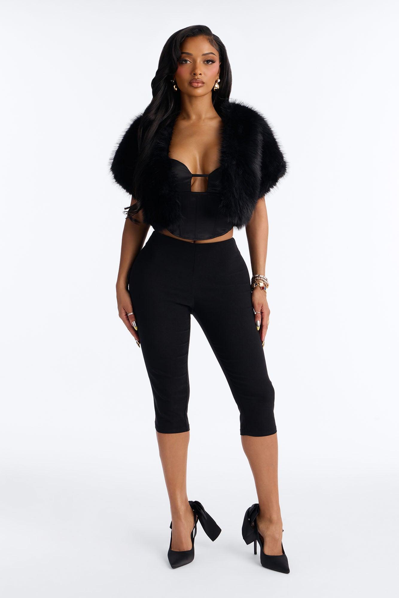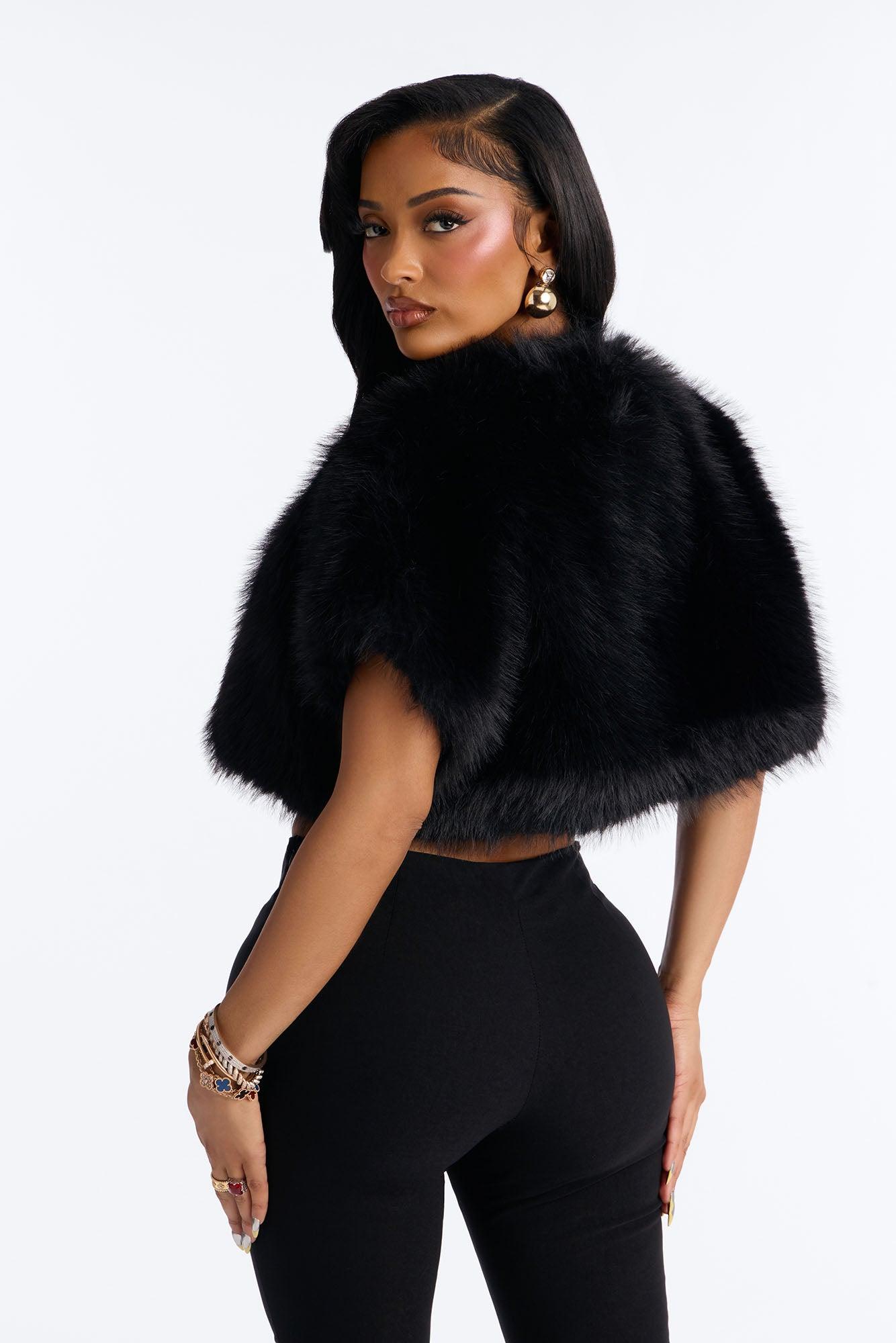 Too Hot To Handle Faux Fur Shrug - Black Female