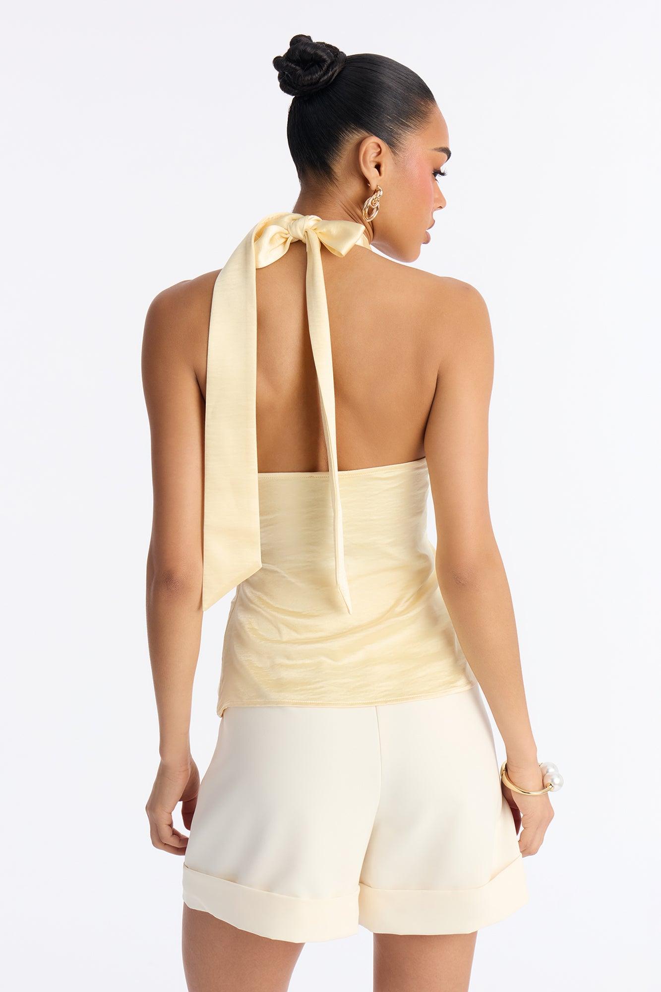 Too Rare To Care Lace Trim Satin Halter Top - Butter Yellow Female