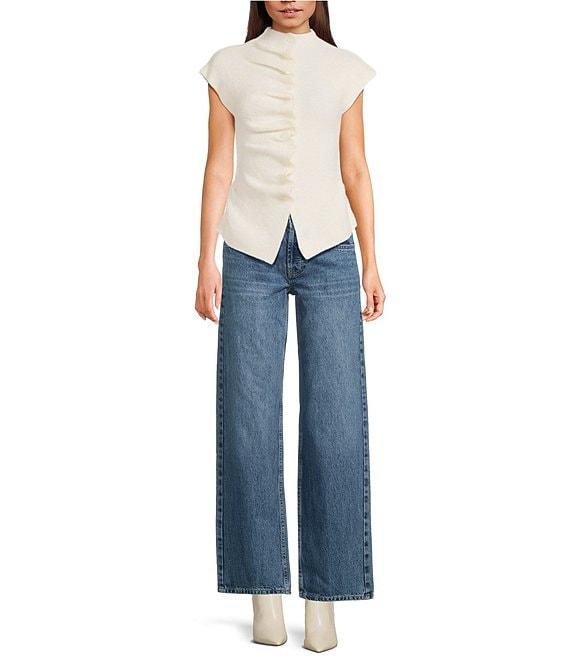TOPSHOP Knit Ruffle Button Front Short Sleeve Top