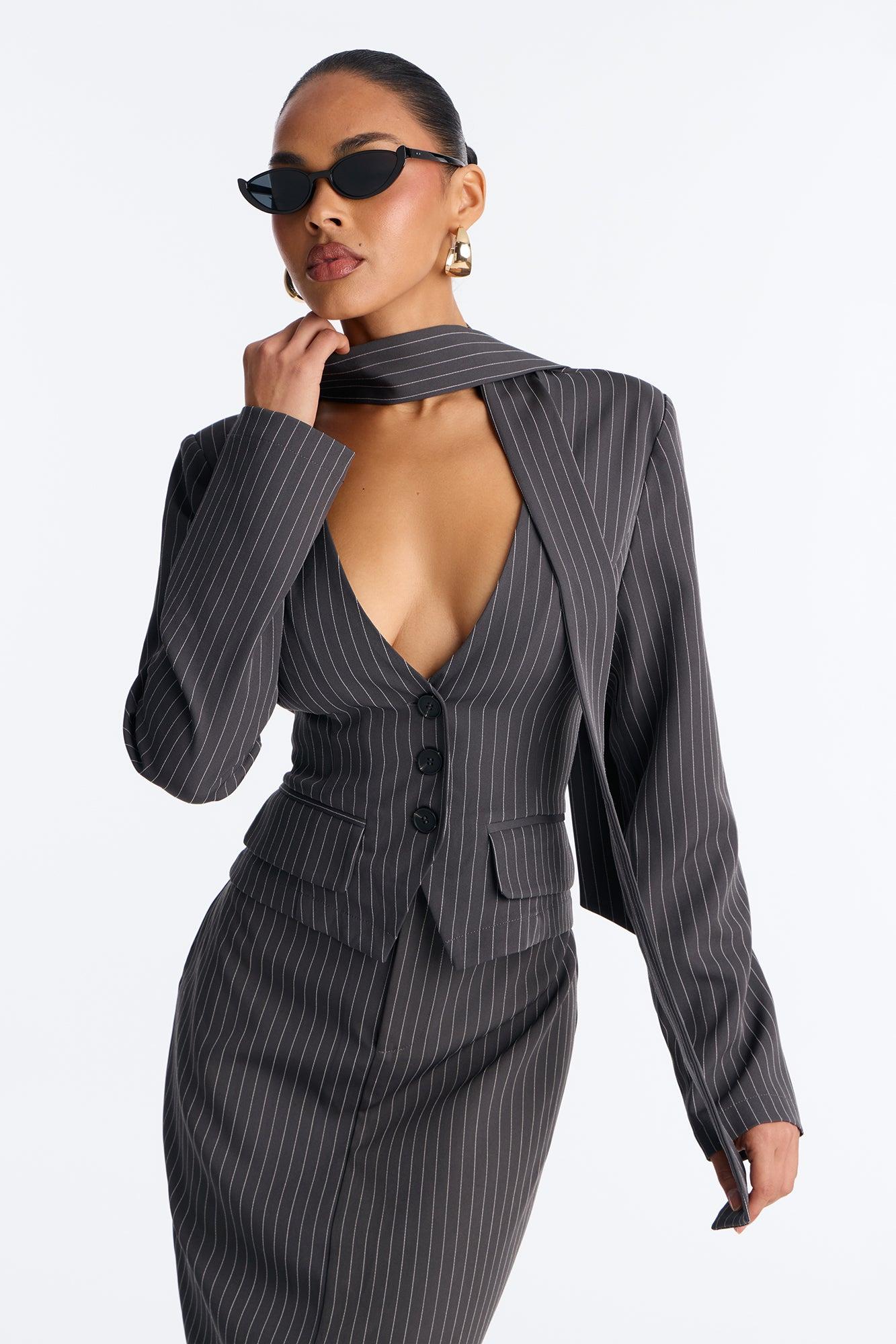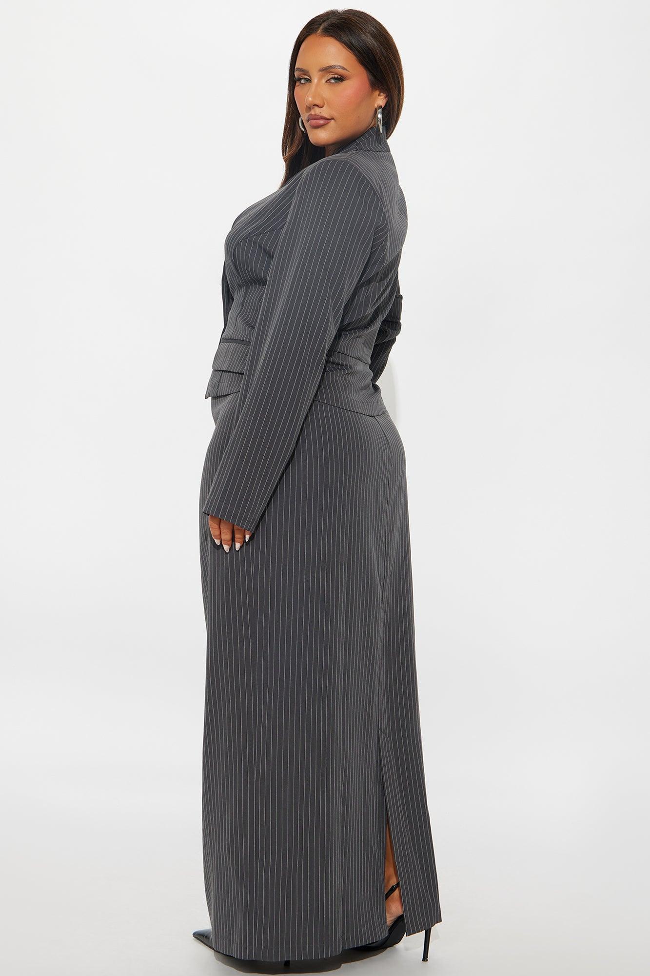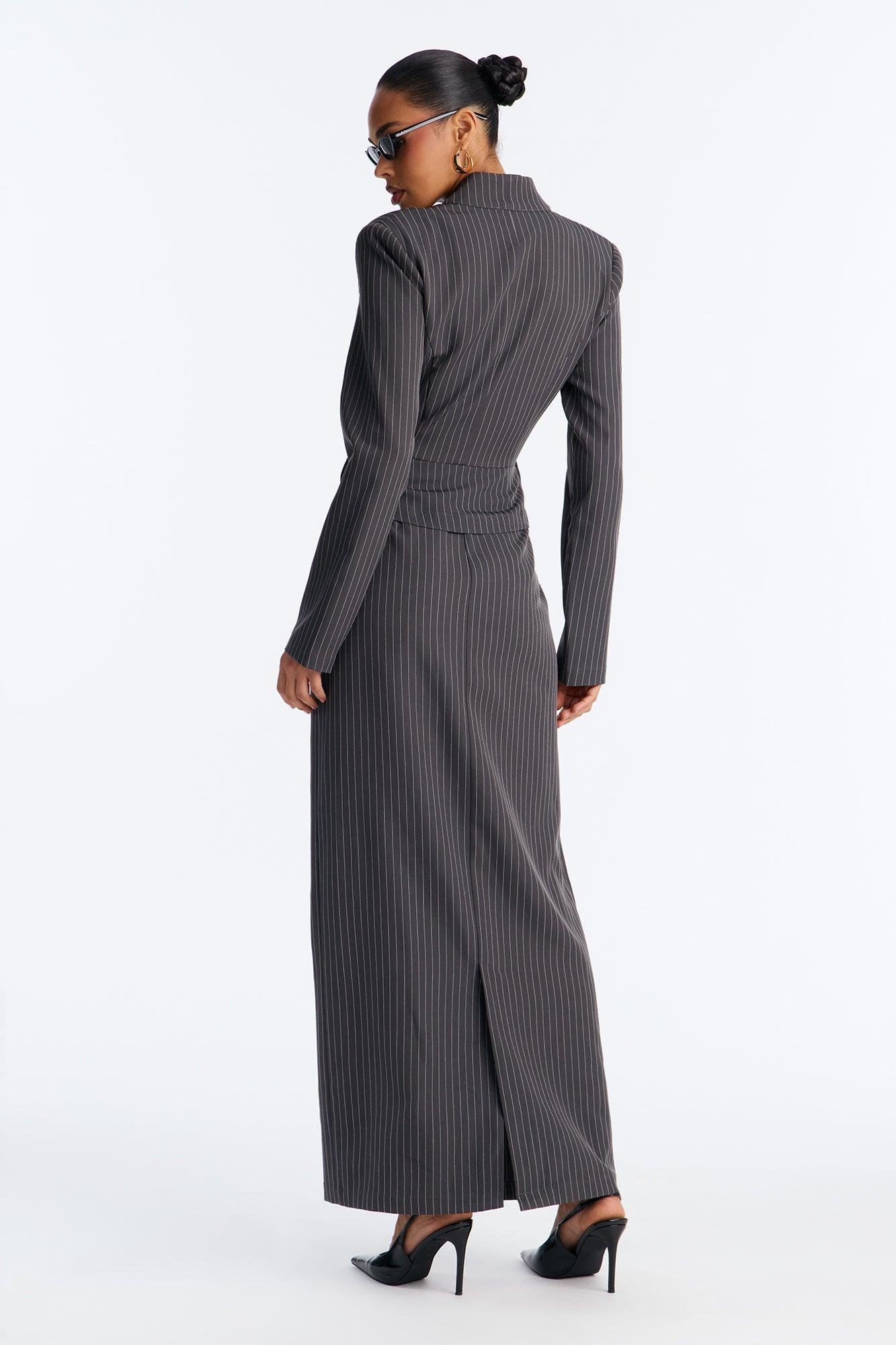 Totally Innocent Pinstripe Maxi Dress - Charcoal Female