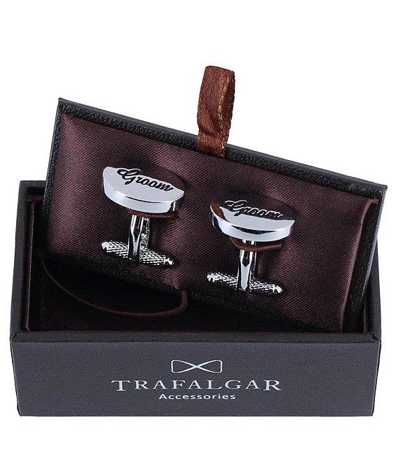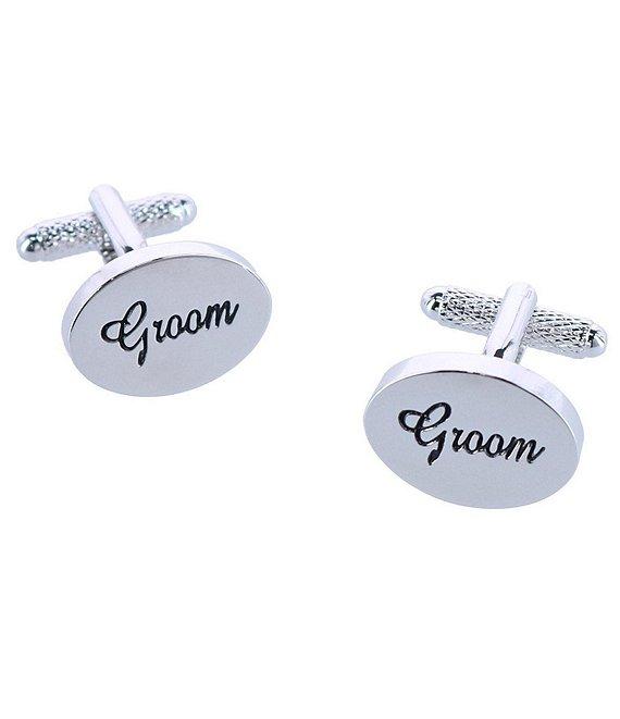 From Trafalgar, these cuff links feature: Simple and handsome designFeatures an oval design with Groom embossingAdd a flare of personality while still looking professionalMeasures .75" x .50"Made of brassSpot cleanImported.