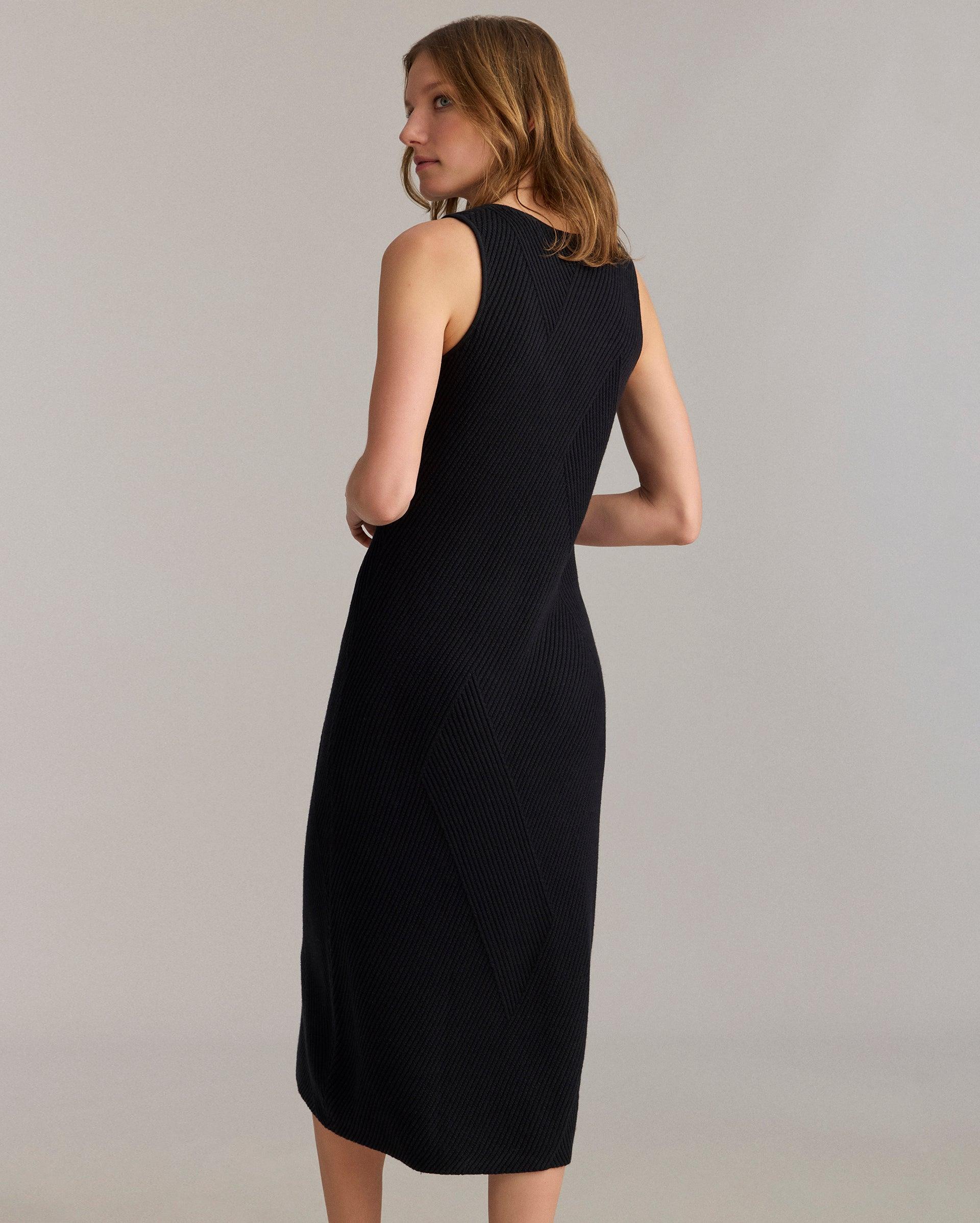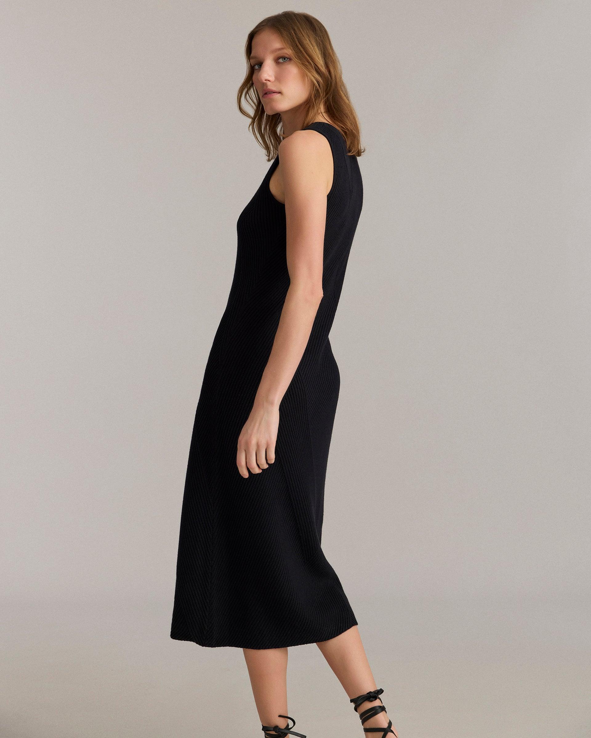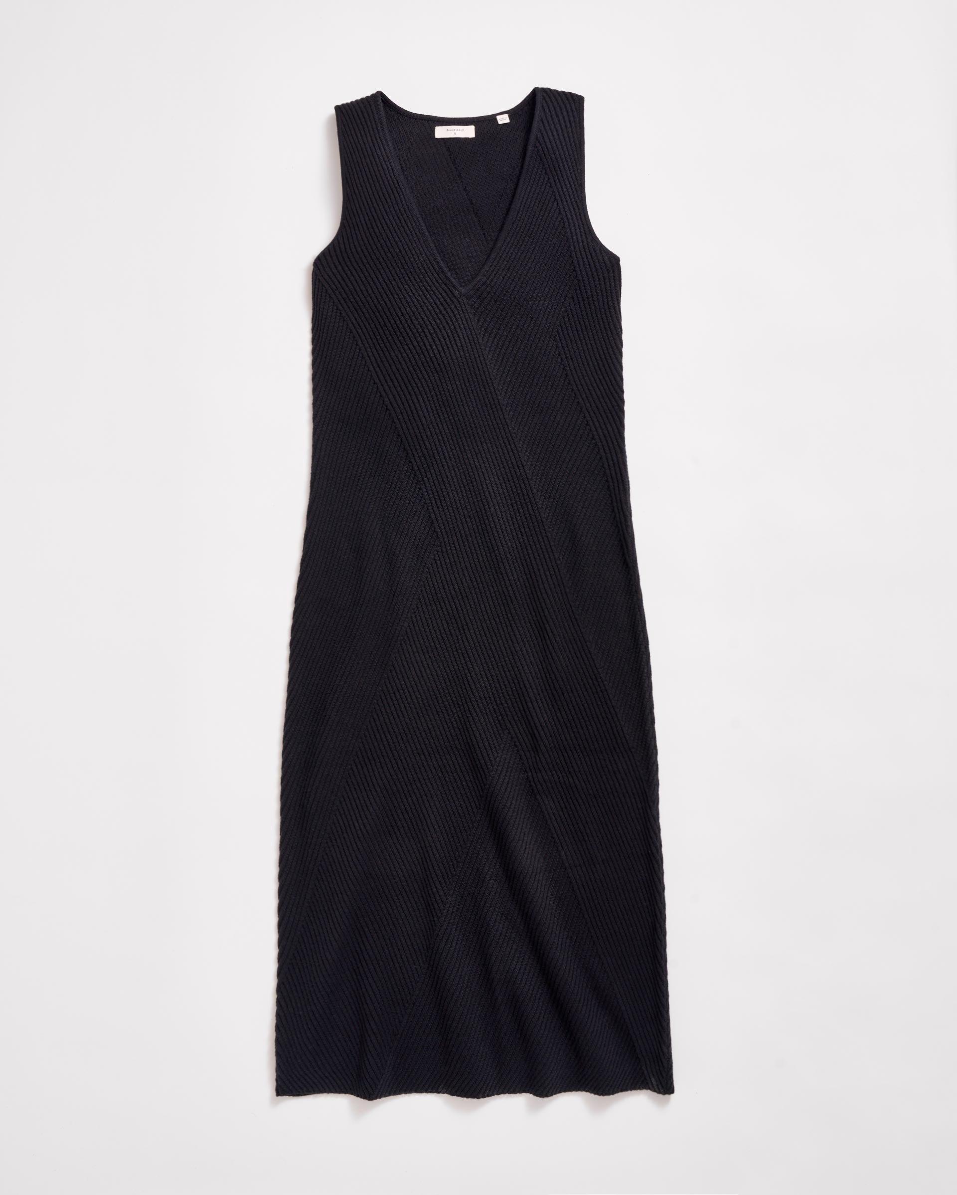 Transfer Rib V-neck Dress - Black, a sleek and stylish choice with a flattering V-neck design, offering versatile elegance in any wardrobe.