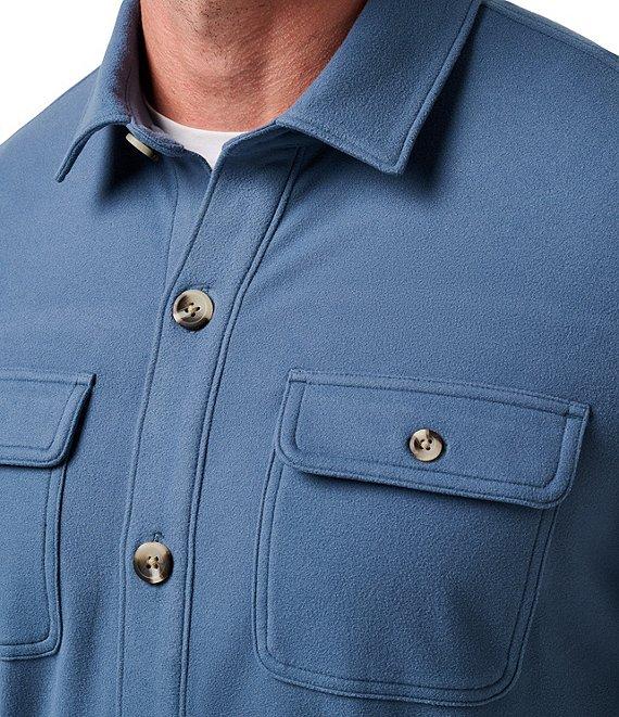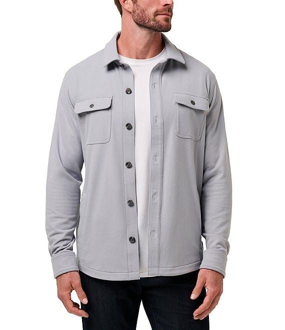 From TravisMathew, this jacket features: Solid tone Spread collar Long sleeves Dual chest pockets with button closure Side entry pockets Button-front closure Custom buttons for an elevated look Lightweight Breathable Stretch fleece fabric Recycled polyester/elastane Machine wash Imported.