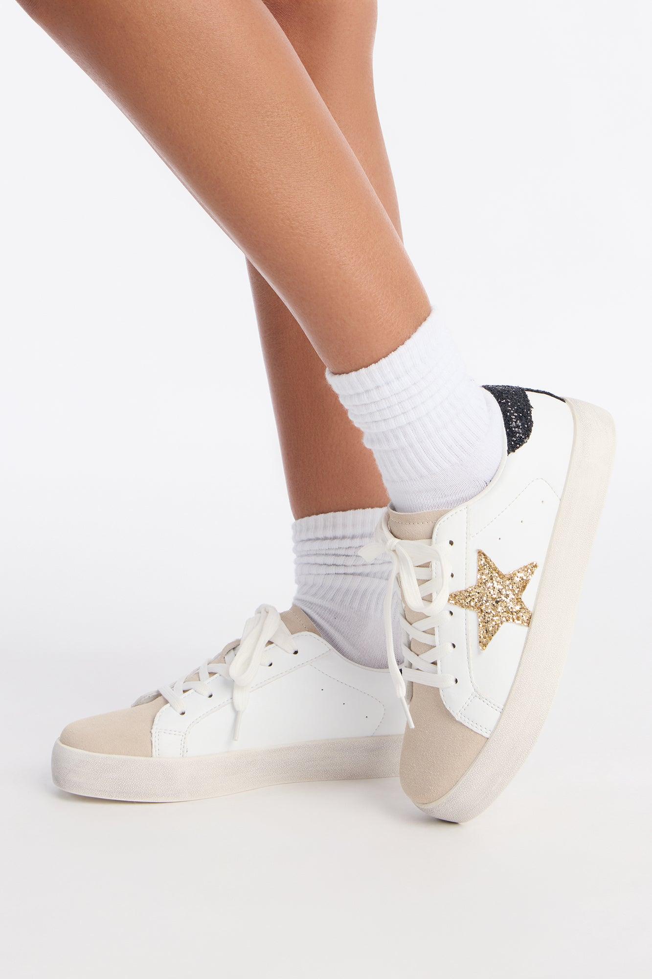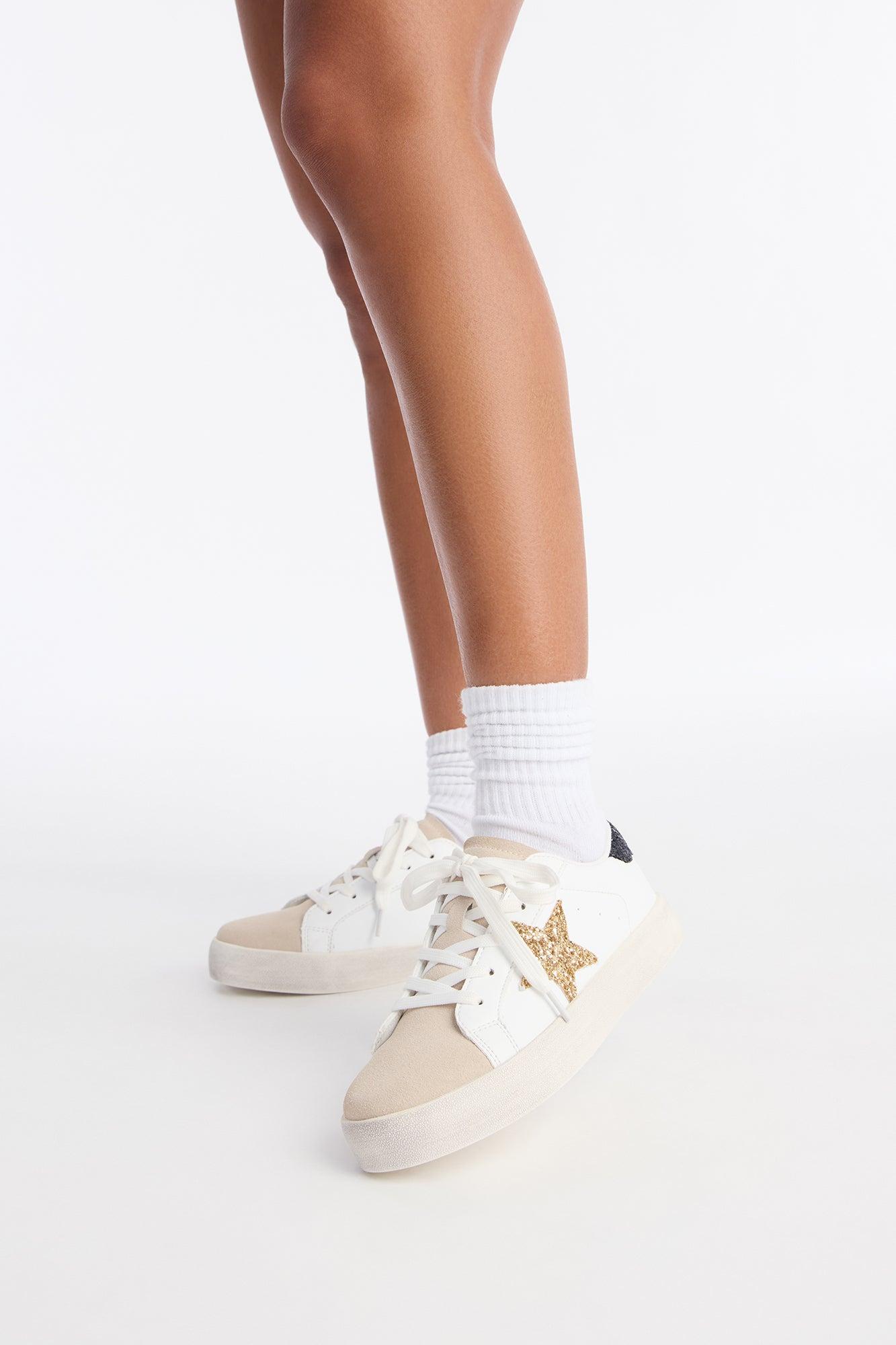 Trev Glitter Star Lace Up Sneakers - Gold Female