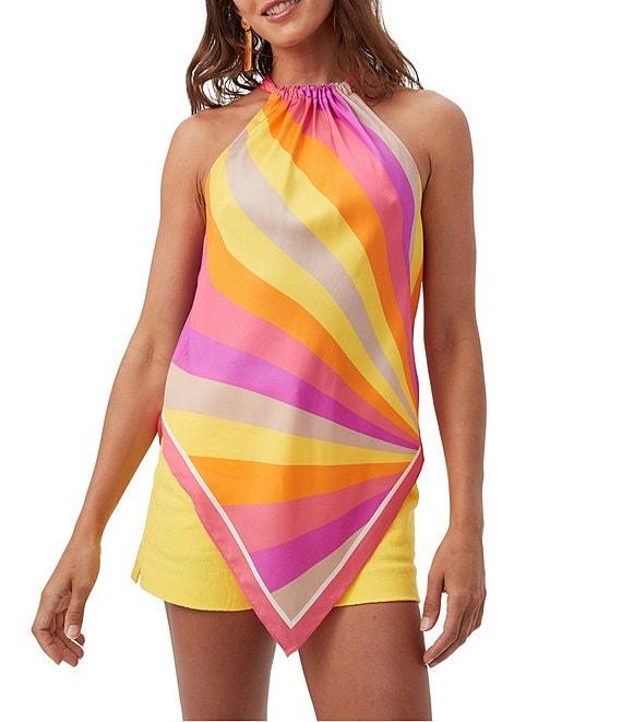 Trina Turk Lavani Printed Modal Halter Neck Sleeve Scarf Top