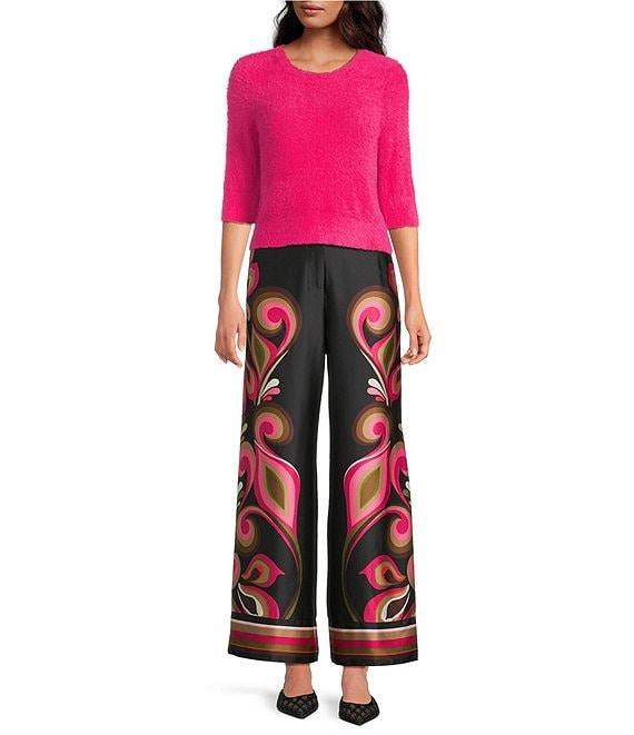 Trina Turk Maliah Fuzzy Knit Round Neck Elbow Sleeve Top