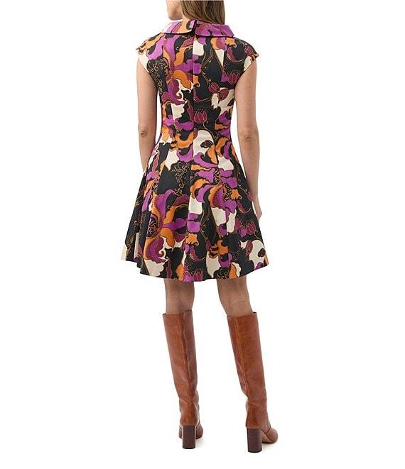 Trina Turk Sabar Printed Jacquard Funnel Neck Cap Sleeve A-Line Mini Dress
