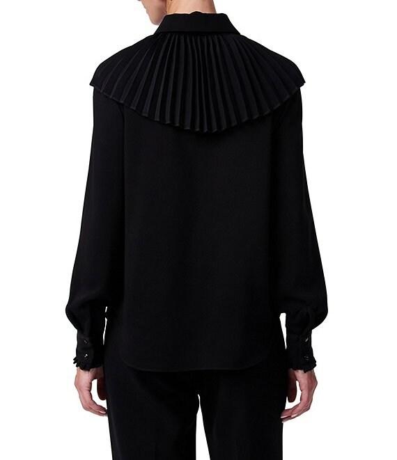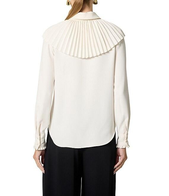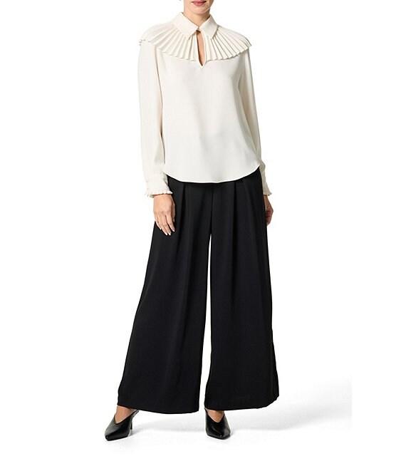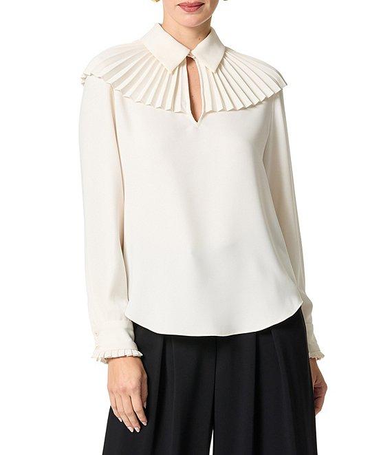 From Trina Turk, this top features: Georgette fabrication Point collar neckline Pleated yoke Keyhole detail Long sleeves with button cuffs Round hem Button front closure Pullover construction Approx. 27" length Polyester Machine wash Made in the USA.