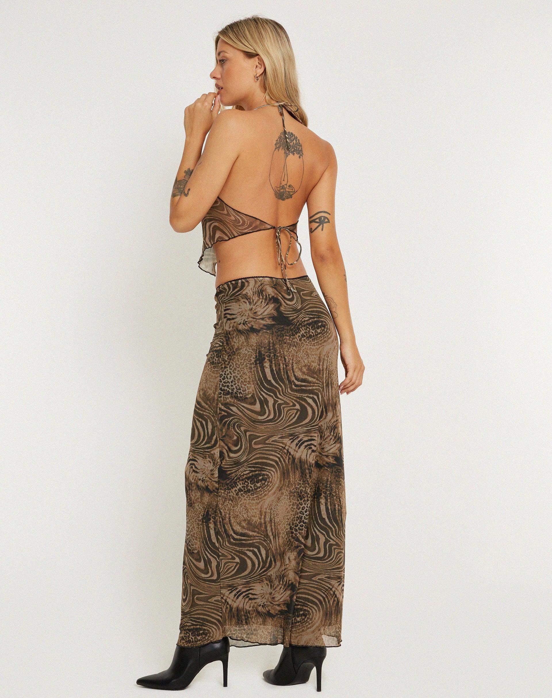 Trula Low Waisted Maxi Skirt in Cheetah Brown