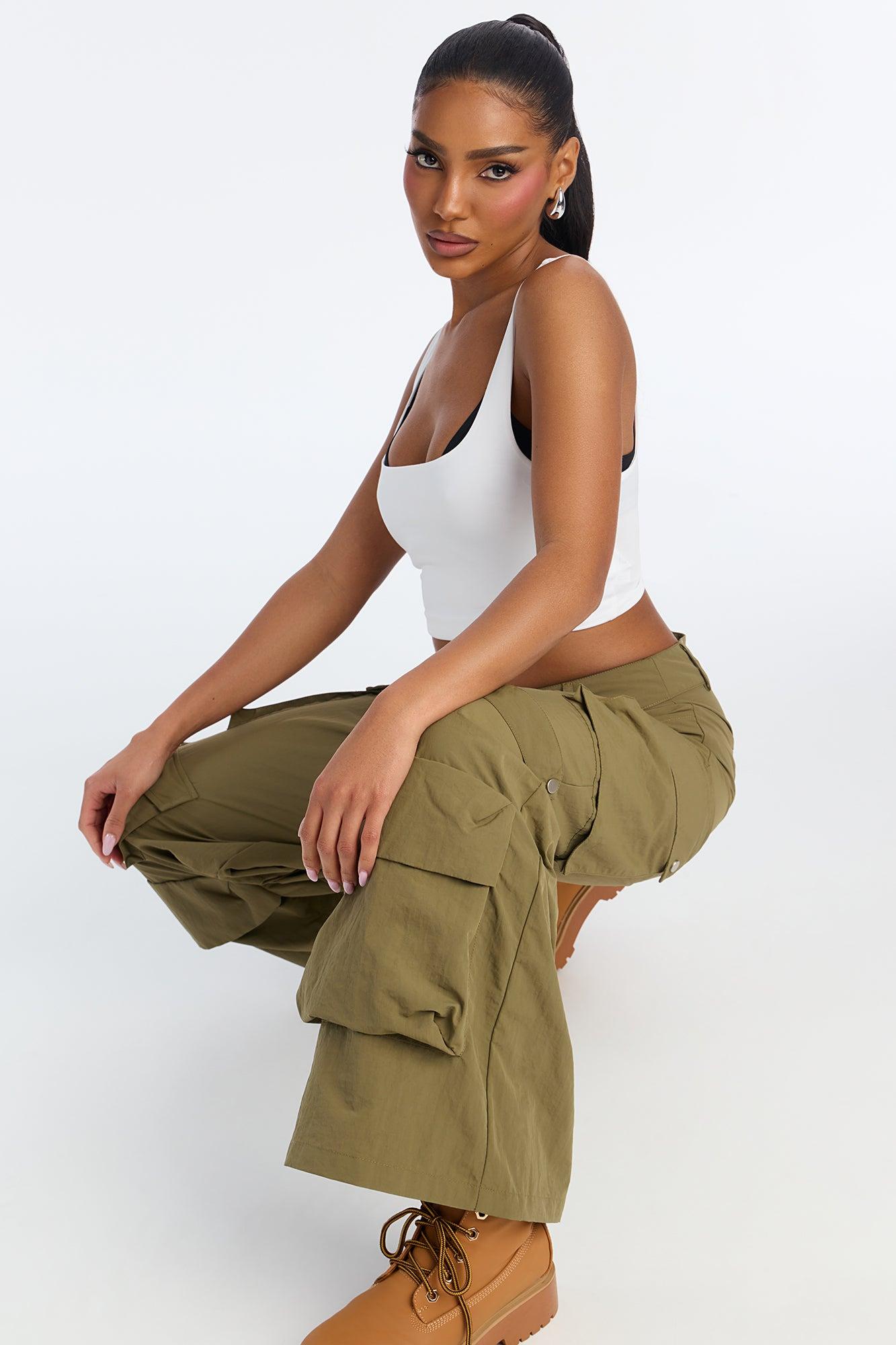 Tara Wide Leg CargoTrouser Pant - Olive Female