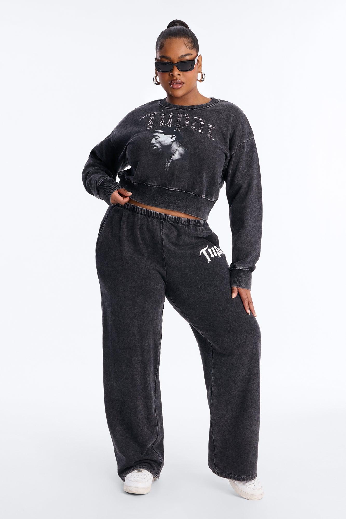 Available In Black. Lounge Pant Fleece Washed Rhinestone Wide Leg Pair With "Tupac Washed Rhinestone Lounge Sweatshirt" Disclaimer: Due To The Specialized Wash, Each Garment Is Unique. Self: 88% Cotton 12% Polyester Imported