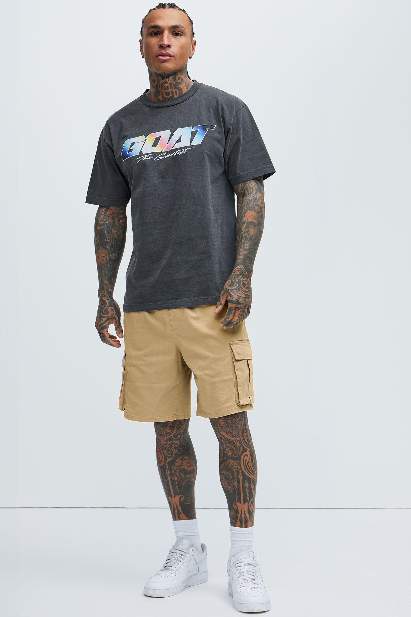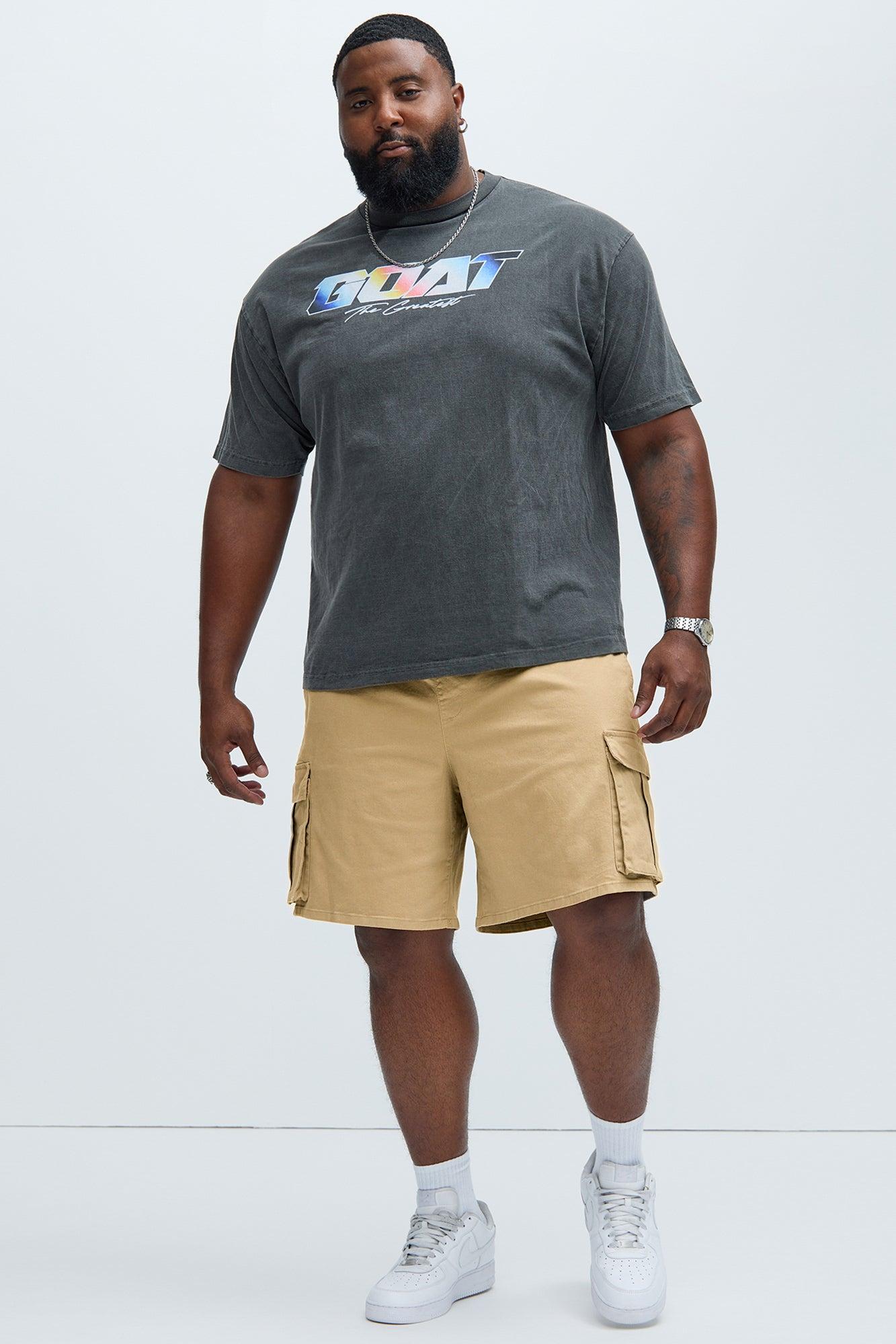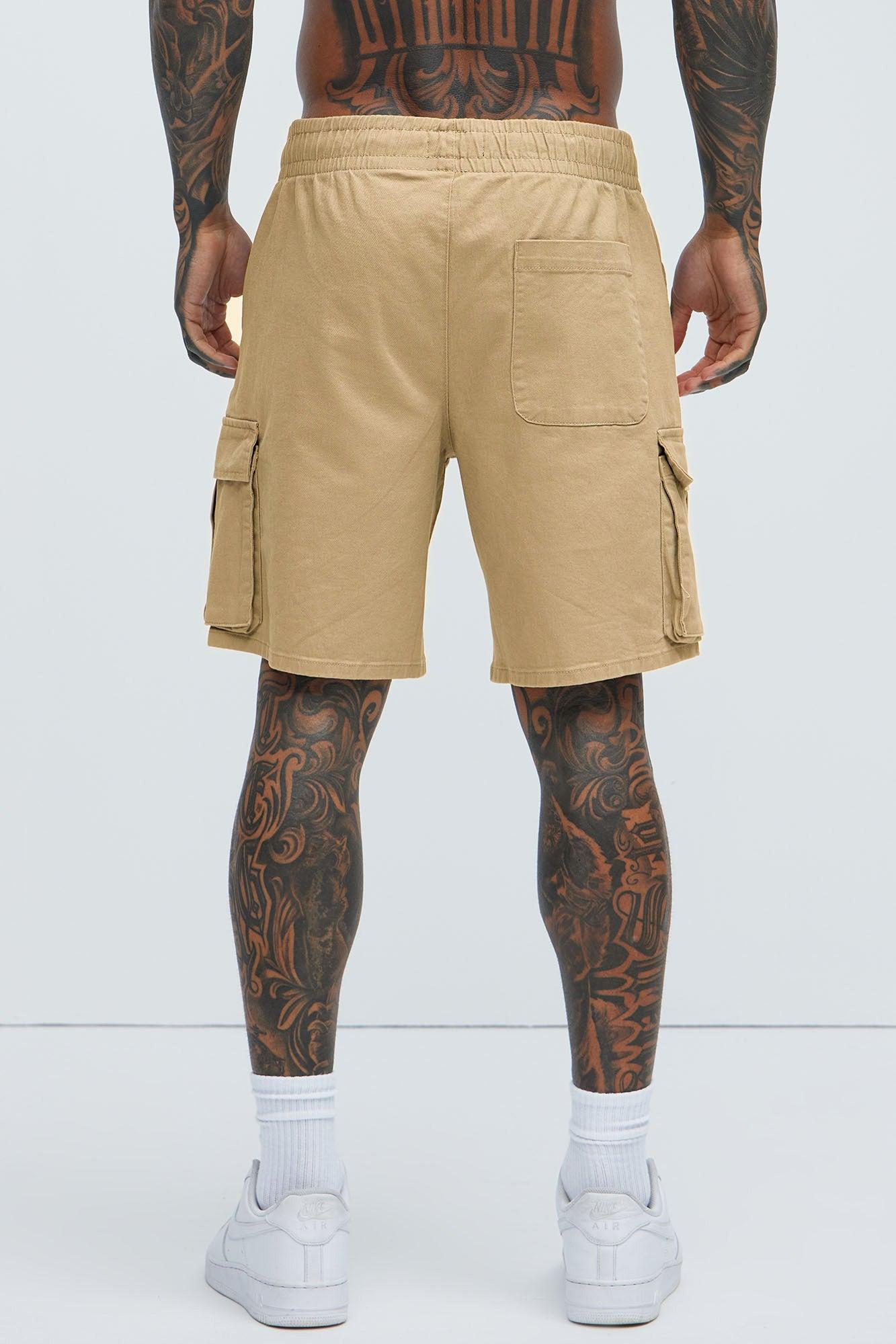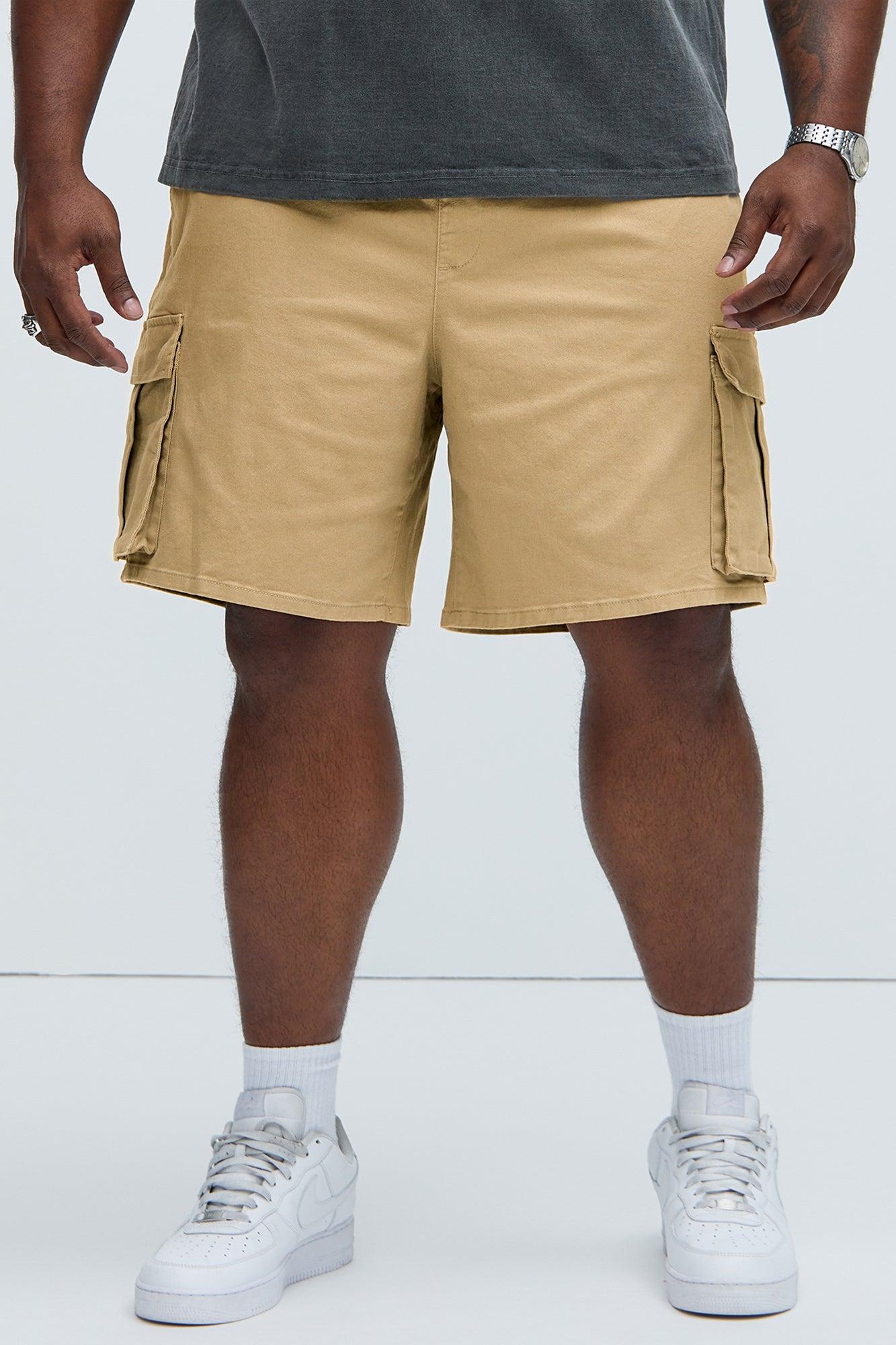 Available In Black, Grey, Khaki And Olive. Elastic Waist Drawstring Side Pockets Cargo Pockets Back Hand Pocket 98% Cotton 2% Spandex Imported