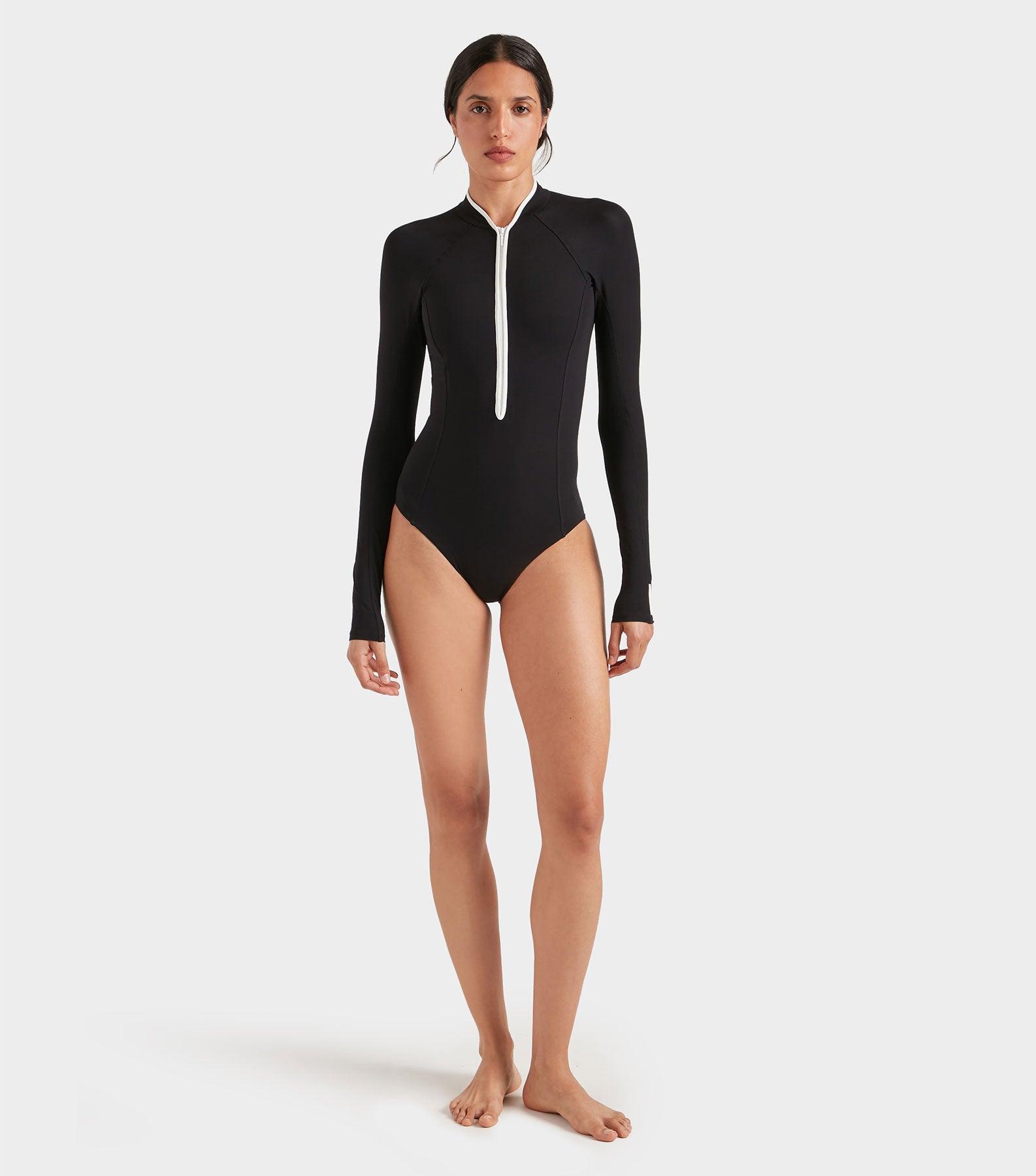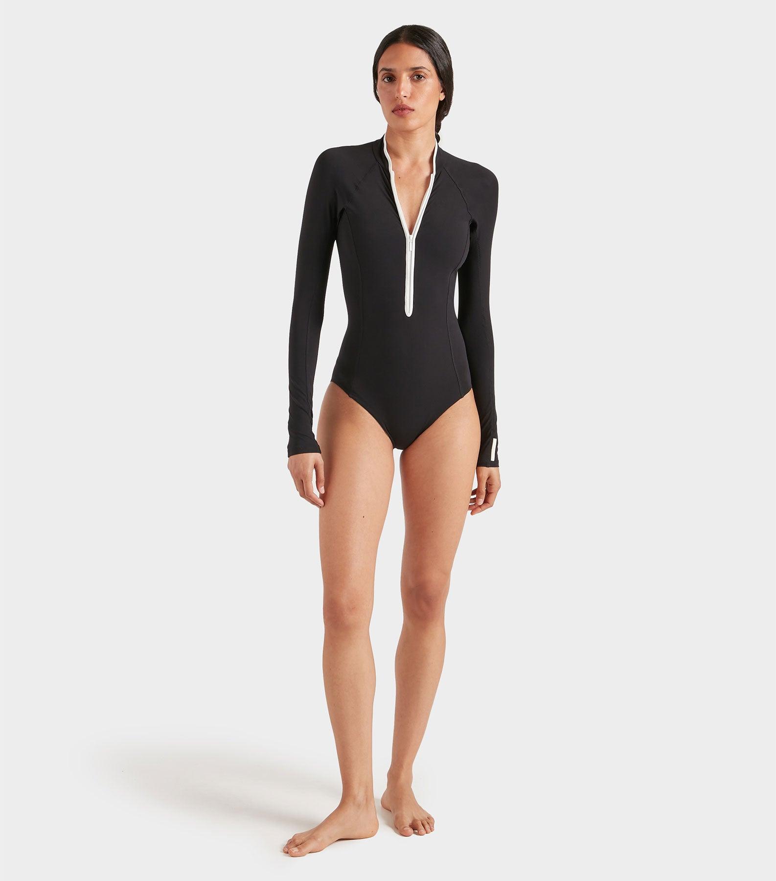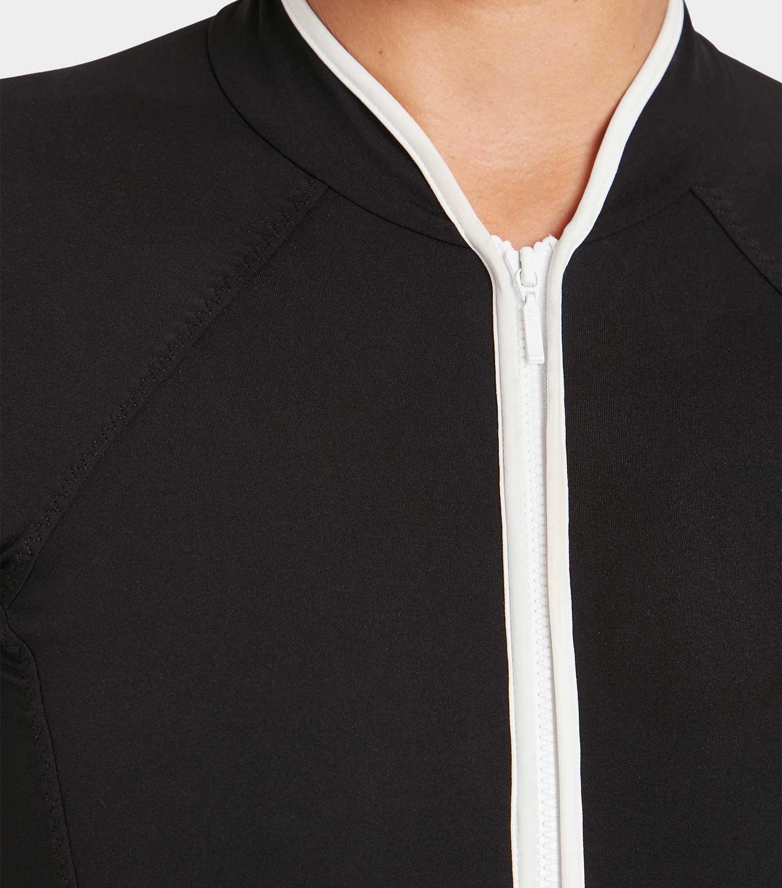 Tyra provides UPF 50+ physical sun protection, with long sleeves, front-zip closure, sporty contrast piping and rubberised logo detailing. Constructed from soft, flexible, ultra-fine Italian fabric, this is high-performance, functional sun protection that doesn't compromise on style.    UPF 50+ physical sun protection Soft, flexible and ultra-fine Italian fabric Front-zip closure Long sleeves 74% recycled polyamide 26% elastane Model wears a size M and is 177cm (  5'10") tall Handwash in fresh cold water with mild detergent only