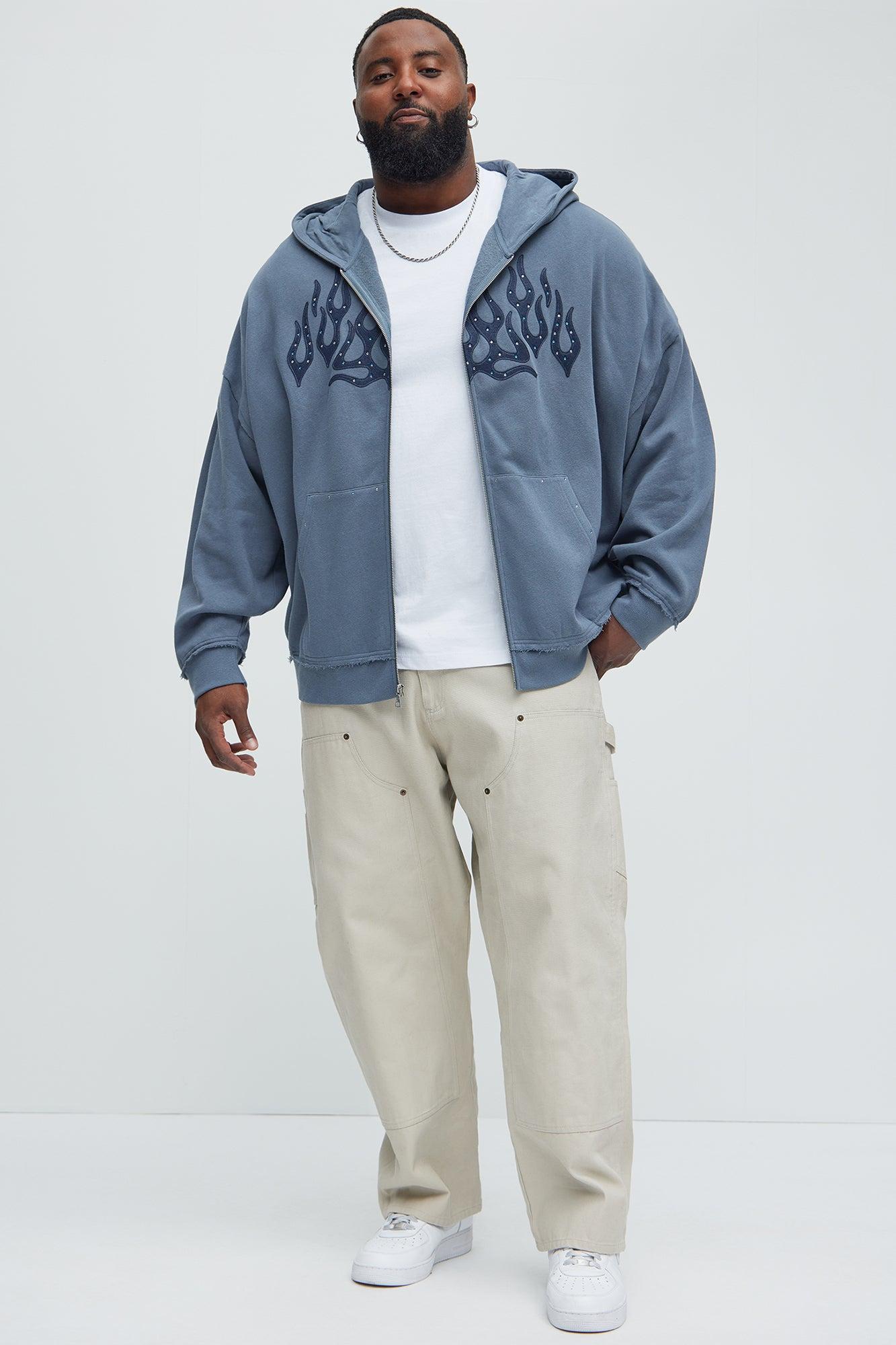 Tyson Oversized Cropped Zip Up Hoodie - Grey