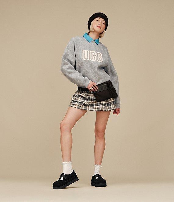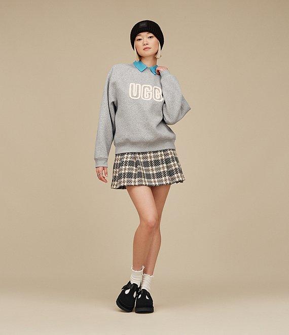 From UGG®, this sweatshirt features: Knit fabrication Crew neckline Long sleeves UGG® Font applique in Chenille knit yarn Rib knit neckline, cuffs, and hem Pullover construction Approx. 24" length Cotton/polyester Machine wash cold/tumble dry low Imported.