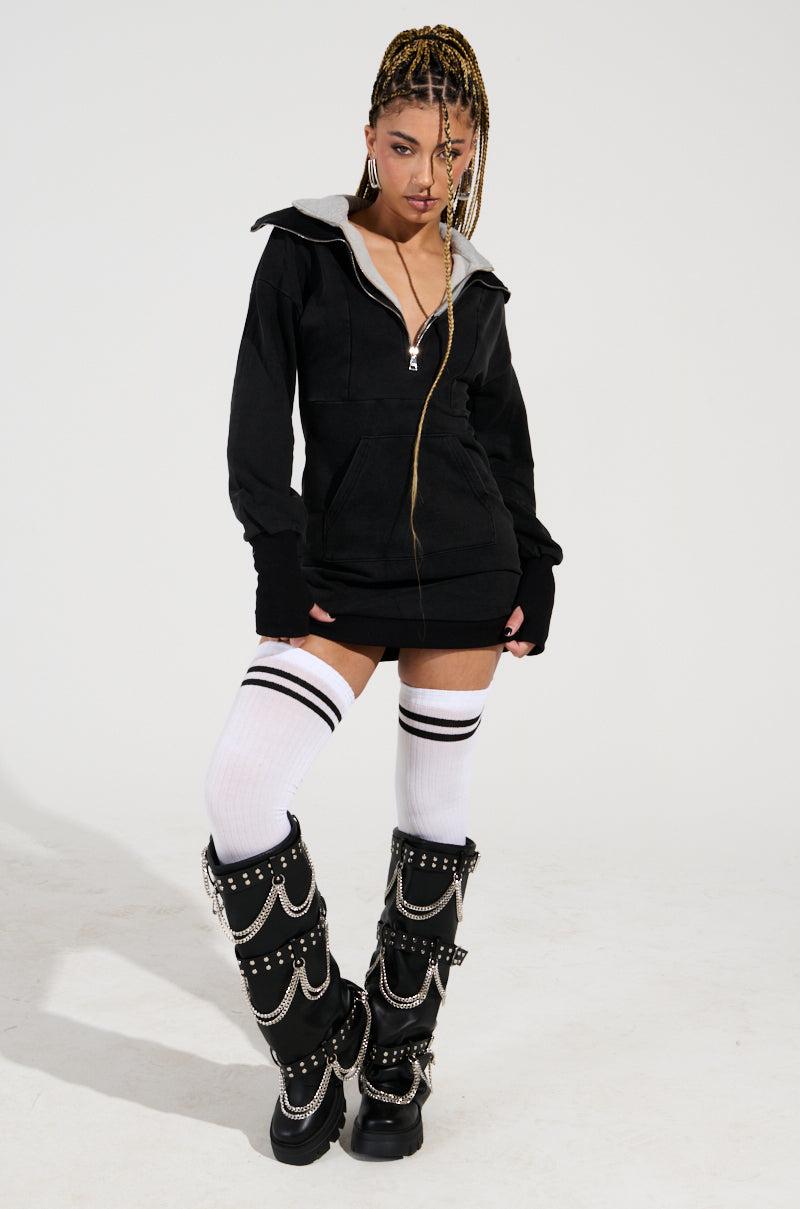 Sporty, spicy, and sweet as can be! The Ultimate Thigh High Socks are crafted from a soft and stretchy ribbed knit fabrication and feature a thigh-high silhouette, two black, varsity-inspired stripes on each thigh, and a coordinating black toe box. - 98% Polyester, 2% Spandex- Hand Wash Cold- Stretchy- Imported (all measurements approximate from size O/S) - 29” LengthProduct ID: 472807