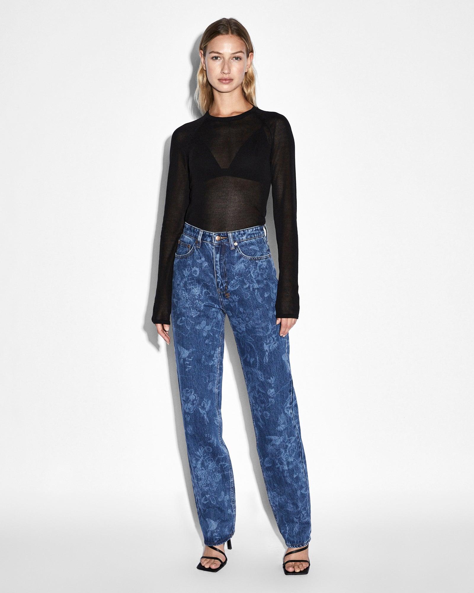 The Ultra Knit Top Black is constructed from viscose/nylon blend yarn in a sheer reverse jersey stitch. This body skimming, long sleeve knit top features a rib crew neck, rib cuff and hem with Ksubi t-box tonal embroidery.Cool hand wash with like colours, do not bleach, remove promptly after wash, dry flat without delay, do not tumble dry, do not iron.