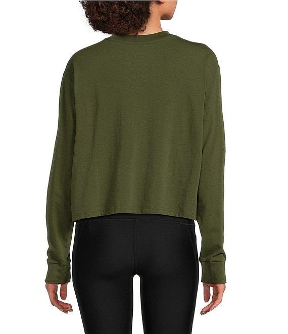 From Under Armour, this top features: Cotton blend fabrication Crew neckline Long sleeves Drop hem shoulder Cropped length 4-way stretch Ribbed cuff and collar detail Cotton, Polyester, Elastane Machine wash Imported.