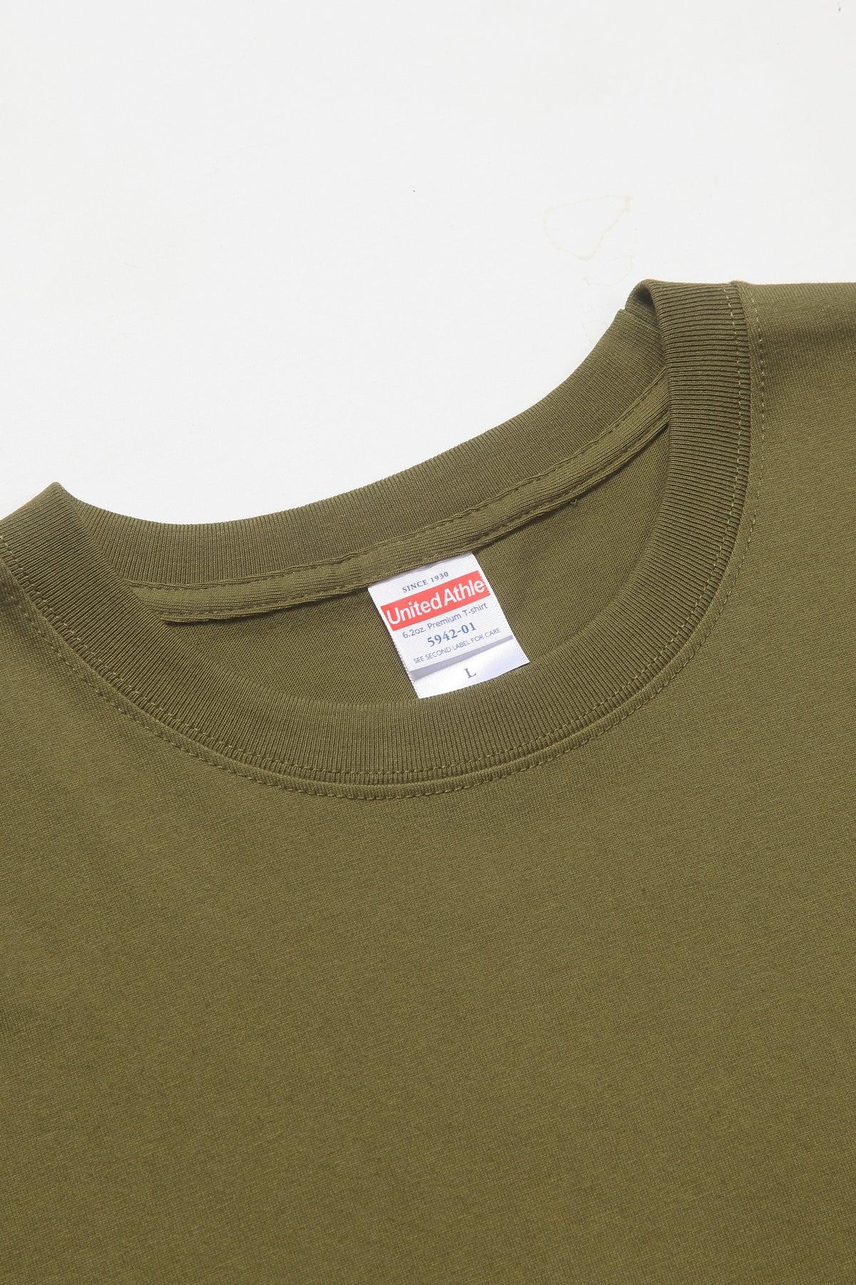 United Athle Japan 5942 premium 6.2 ounce premium t-shirt, 100% cotton, classic fit crew neck t-shirt with twin stitched neckline. We find this t-shirt runs slightly small, please see measurements below: