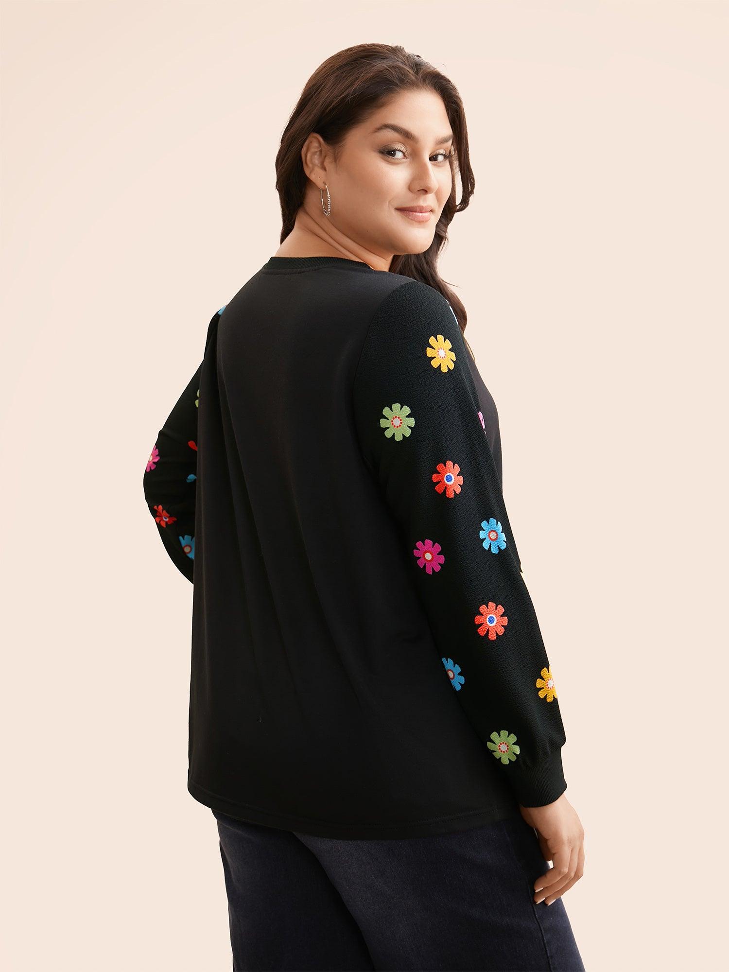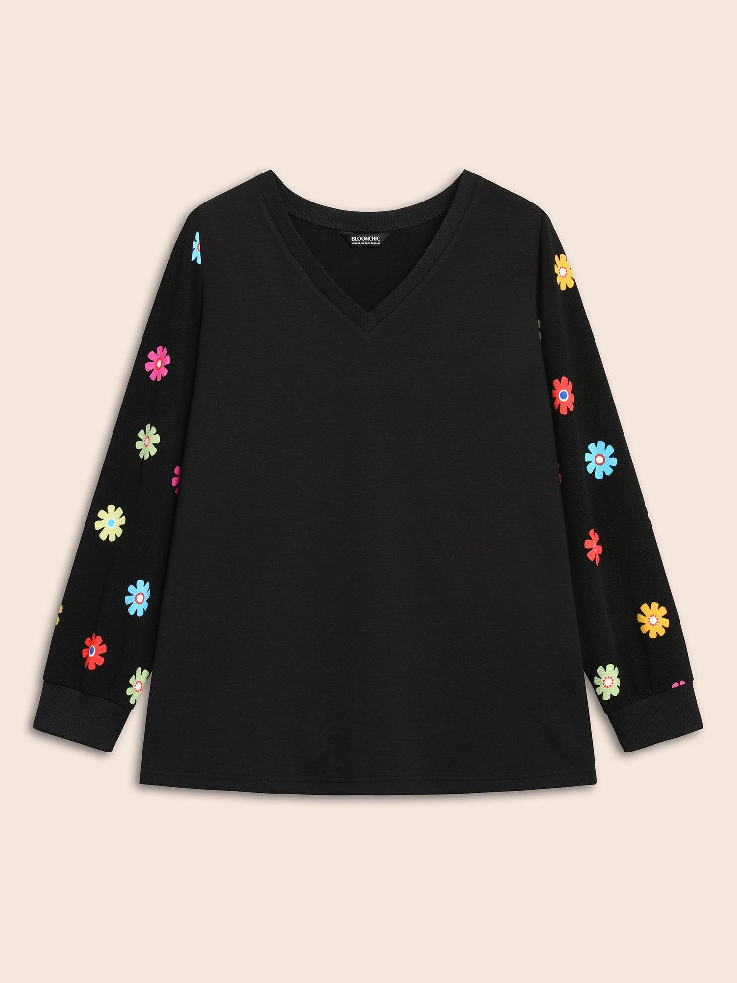 Shop V Neck Floral Slightly Stretchy Sweatshirt now and redefine your style with confidence at BloomChic. Tailored for mid and plus-size women. This trendy Tops Women, sizes 10-30. Season:Winter;Color:Black;Style:Elegant;Neckline:Non;Sleeve Type:Regular Sleeve;Prints:Non;Details:Patchwork, Contrast;Pocket:No-pocket;Belt:No-belt;Closure Type:Non